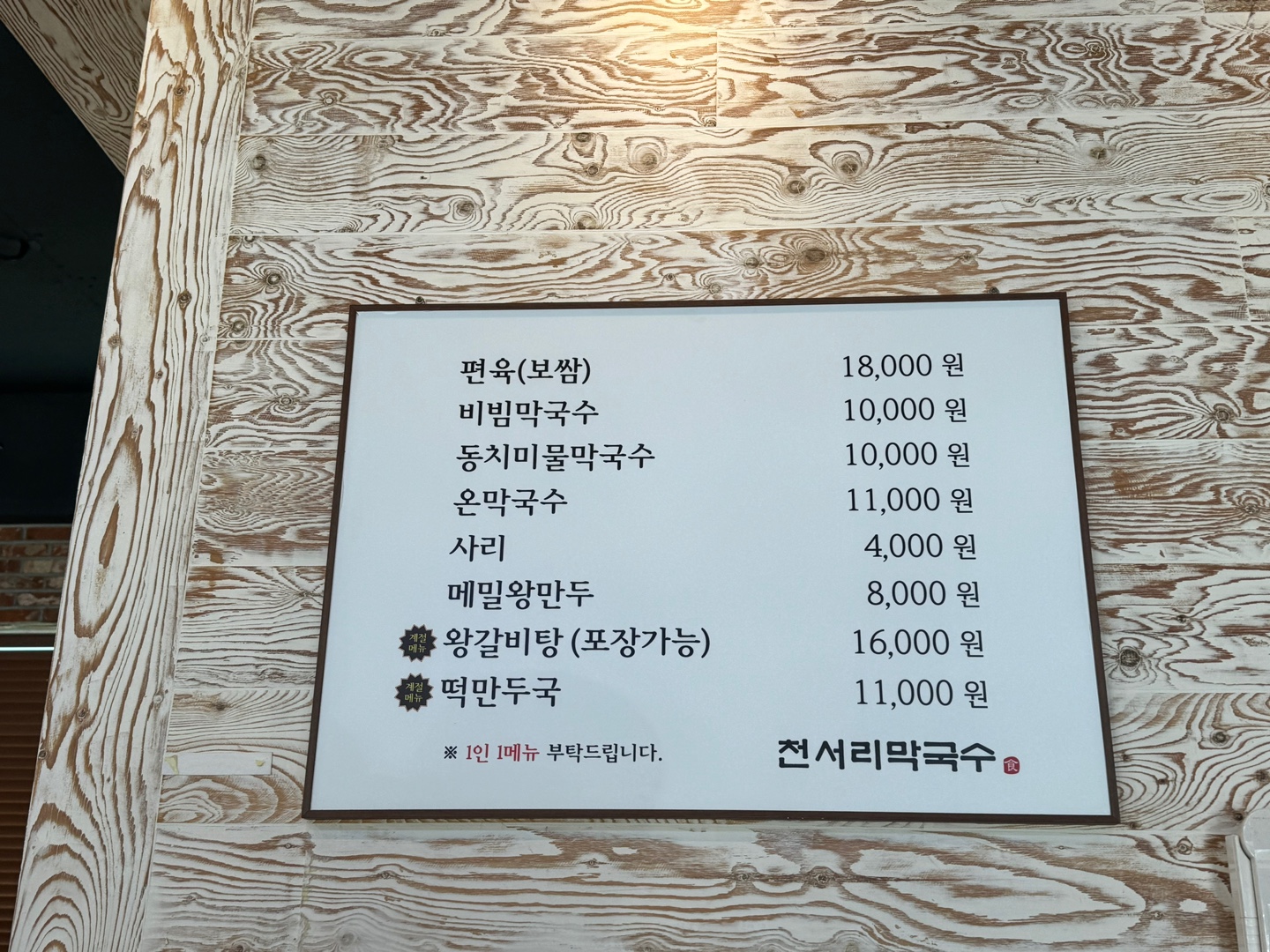 보쌈, 비빔막국수, 동치미물막국수, 온막국수, 메밀왕만두는 상시 판매중이고 동절기에는 왕갈비탕과 떡만두국을 판매중입니다. 막국수 곱빼기는 1,000원 추가입니다.
