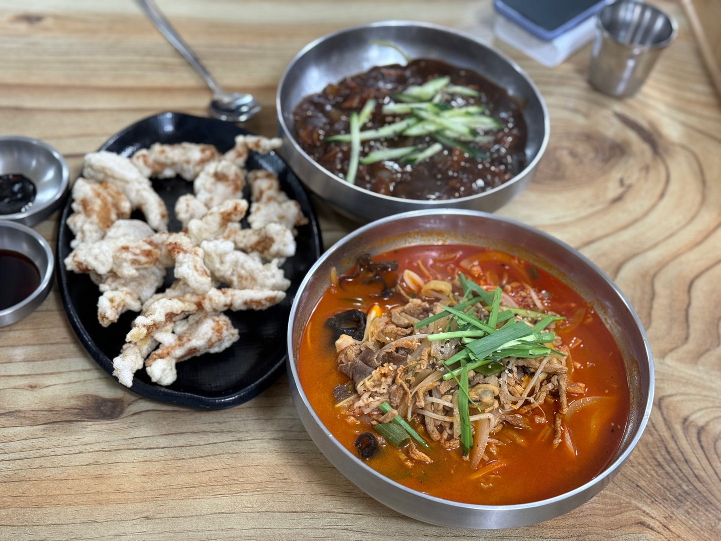 짜장면은 기존의 익숙한 까만 짜장면보다는 물 탄 느낌의 색이어서 신기했으나 맛은 똑같았습니다.