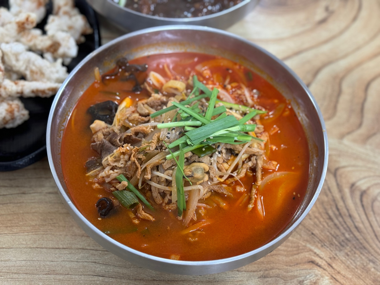 고기짬뽕답게 국물은 교동짬뽕스타일로 고기맛이 강하게 나고 불향도 세서 아주 맛있었습니다.