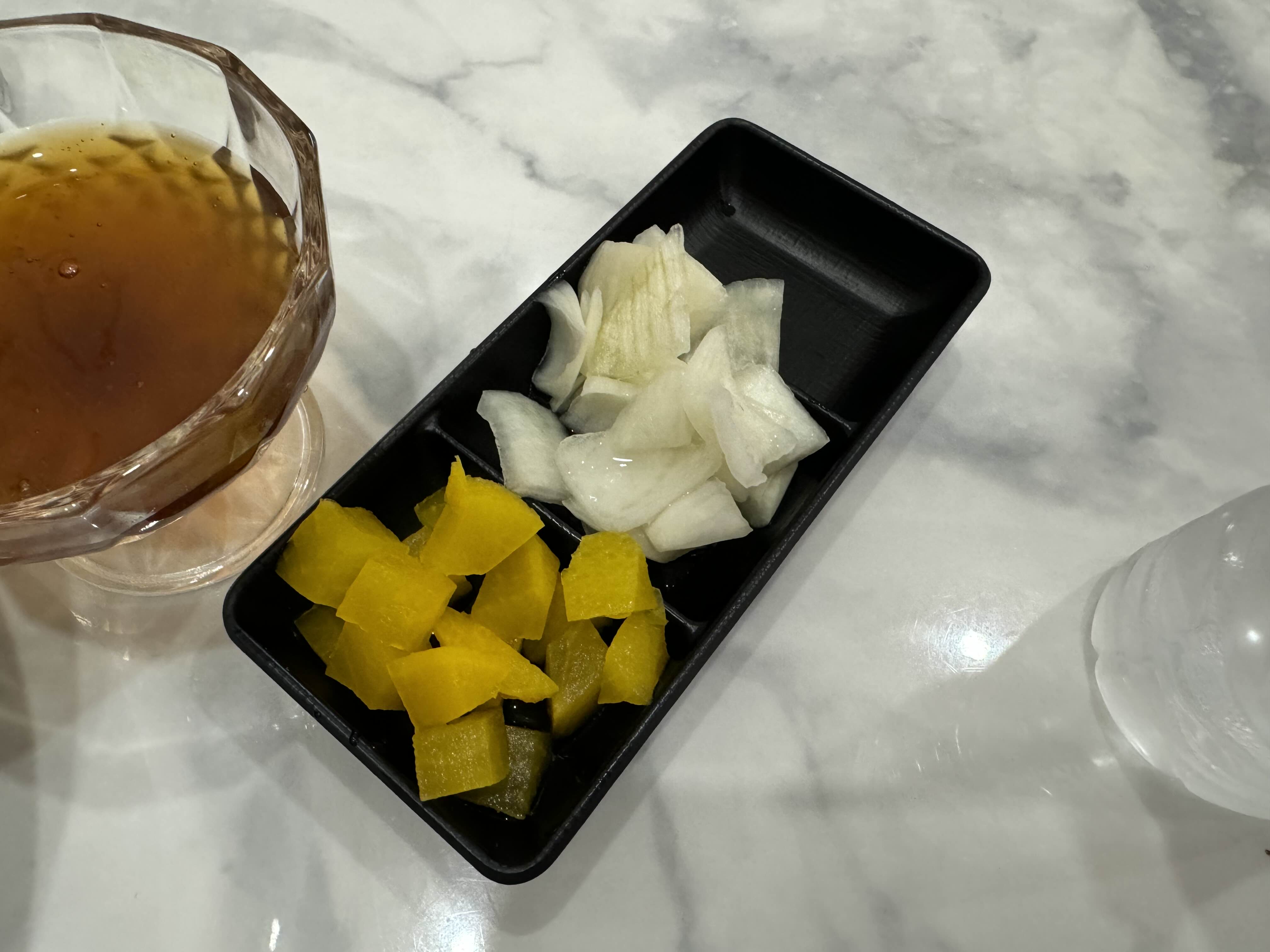 단무지와 양파절임은 셀프입니다. 새콤한 맛이 느끼한 맛을 잡아줍니다.