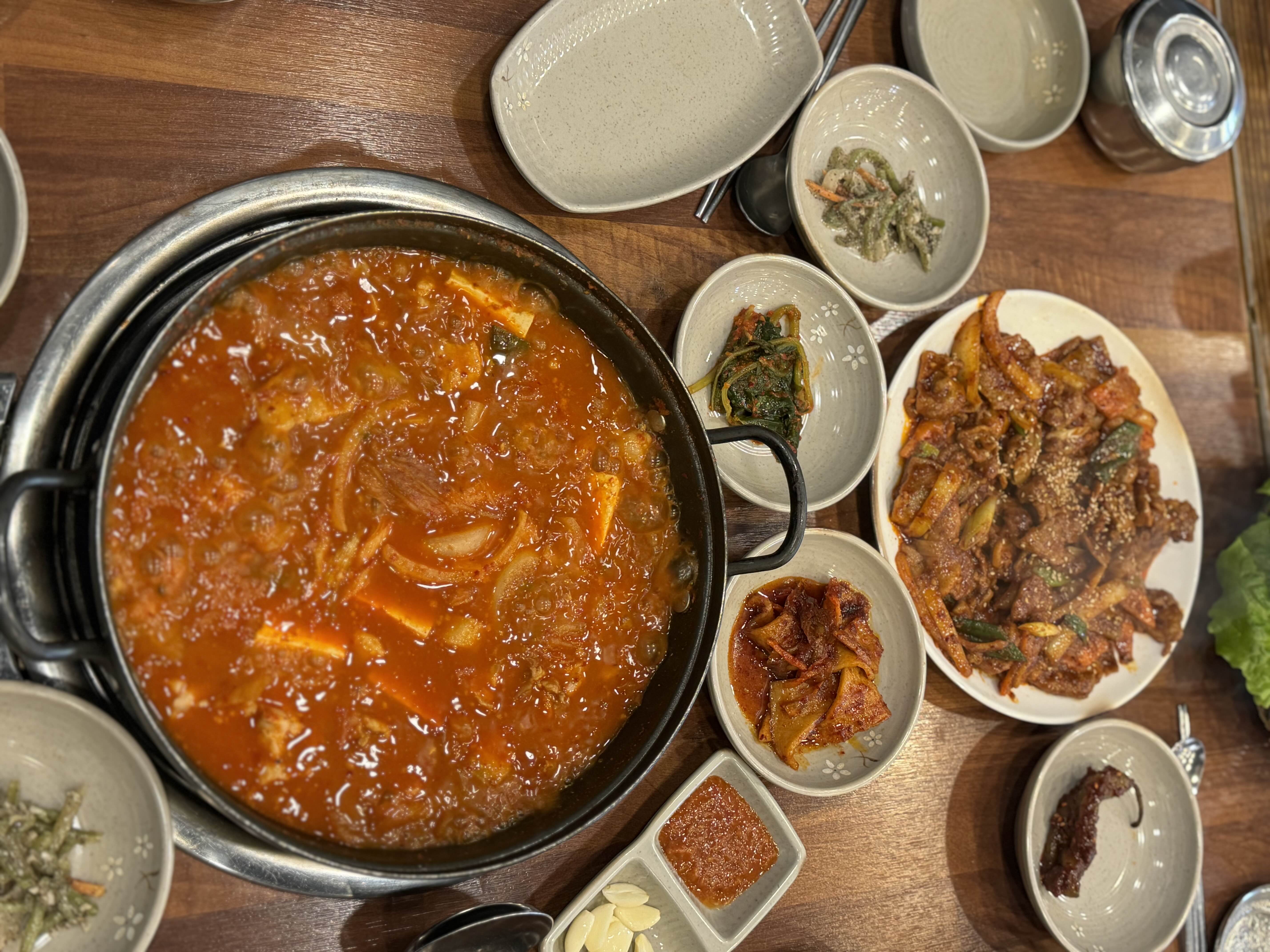 김치찌개와 제육볶음이 나왔습니다. 양이 꽤 많습니다.