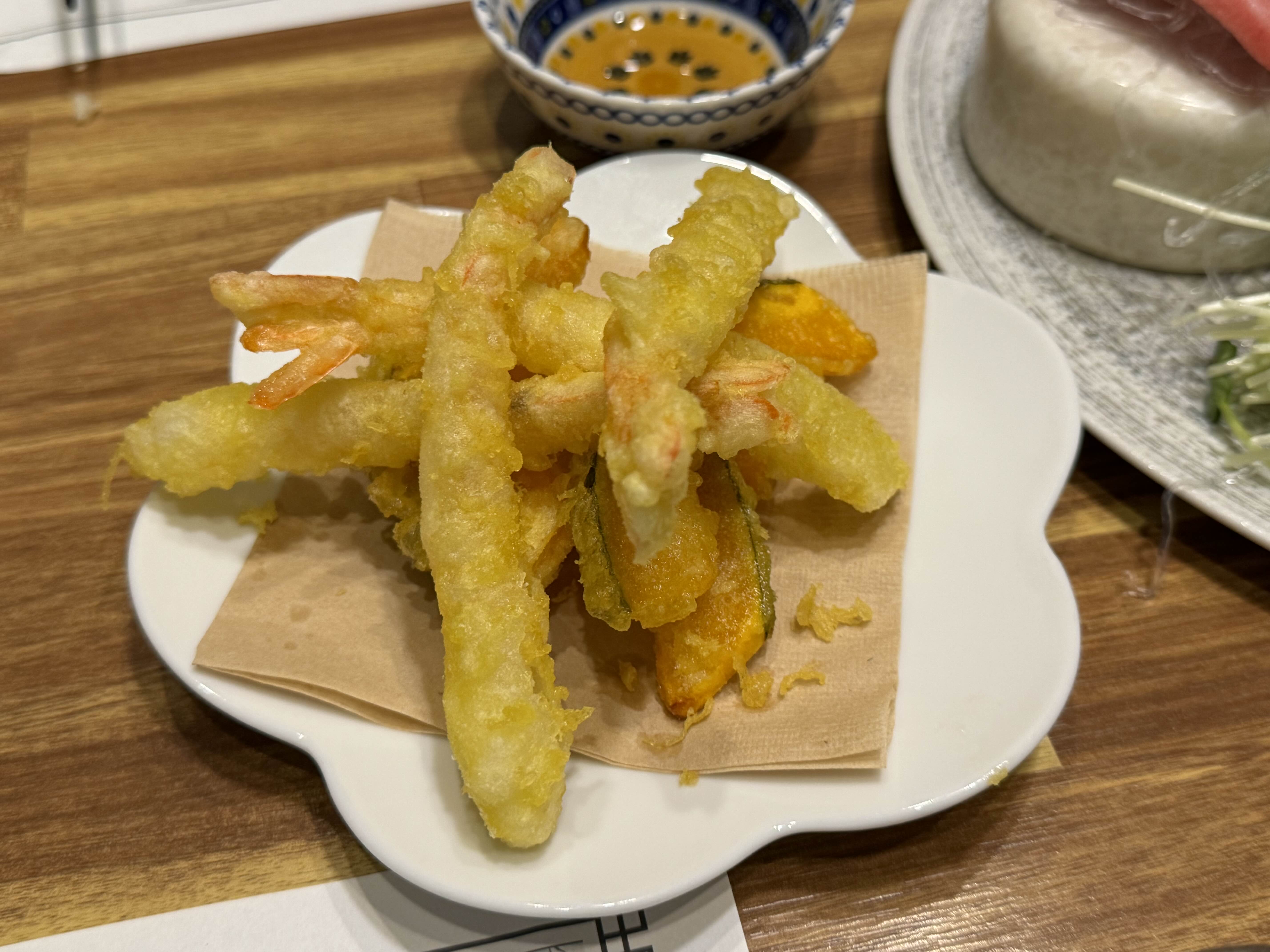 새우튀김과 단호박 튀딤이 나왔습니다. 기름이 깨끗하여 아주 빛깔이 밝고 이쁩니다. 아주 바삭바삭하고 맛있었습니다.