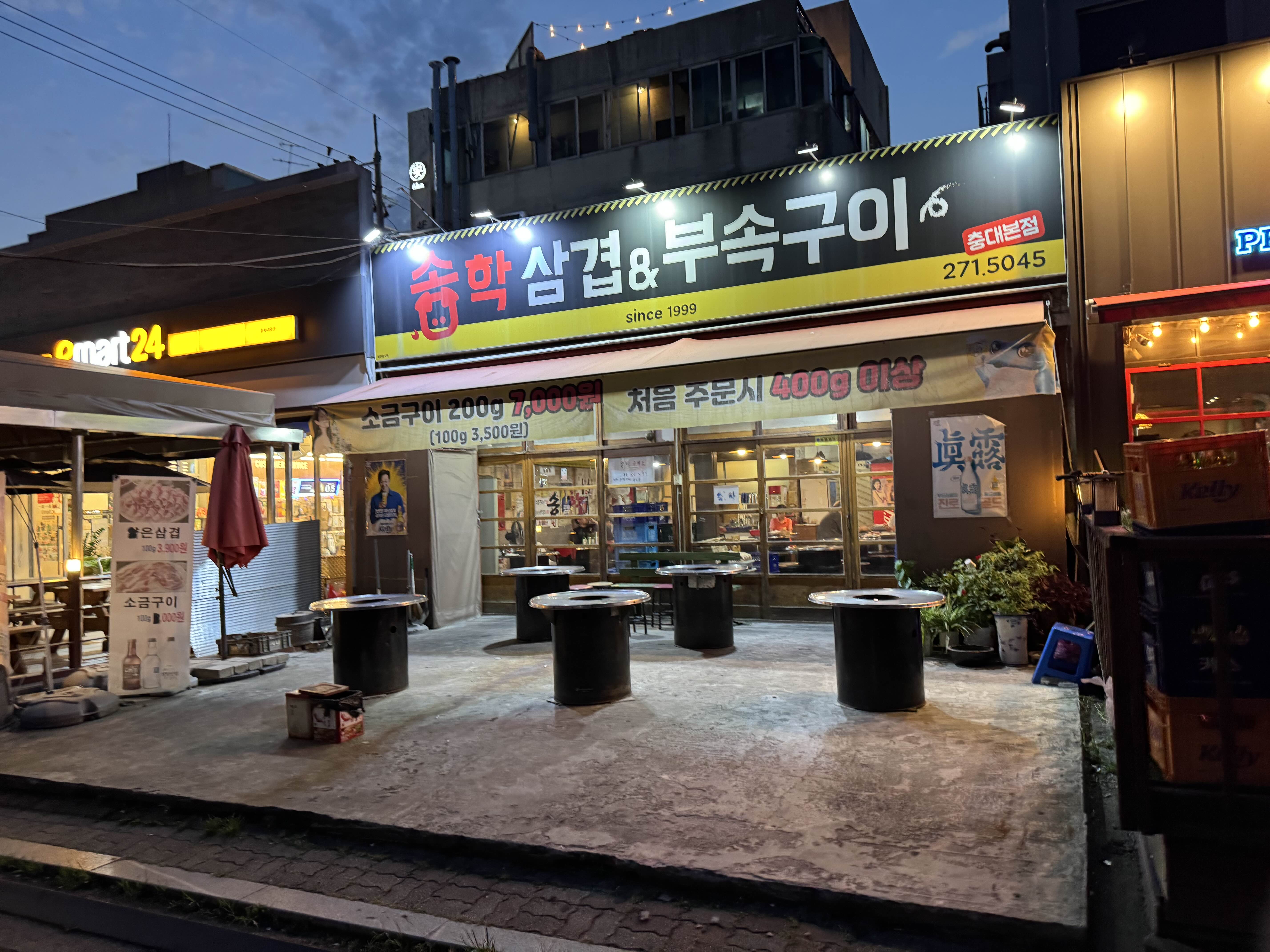 청주 충북대 중문에서 1999년부터 영업중인 송학삼겹&부속구이집에 방문했습니다. 가격이 저렴하고 맛있는데다가 사장님이 무척 친절하셔서 청주에 가면 자주 들르는 집입니다.