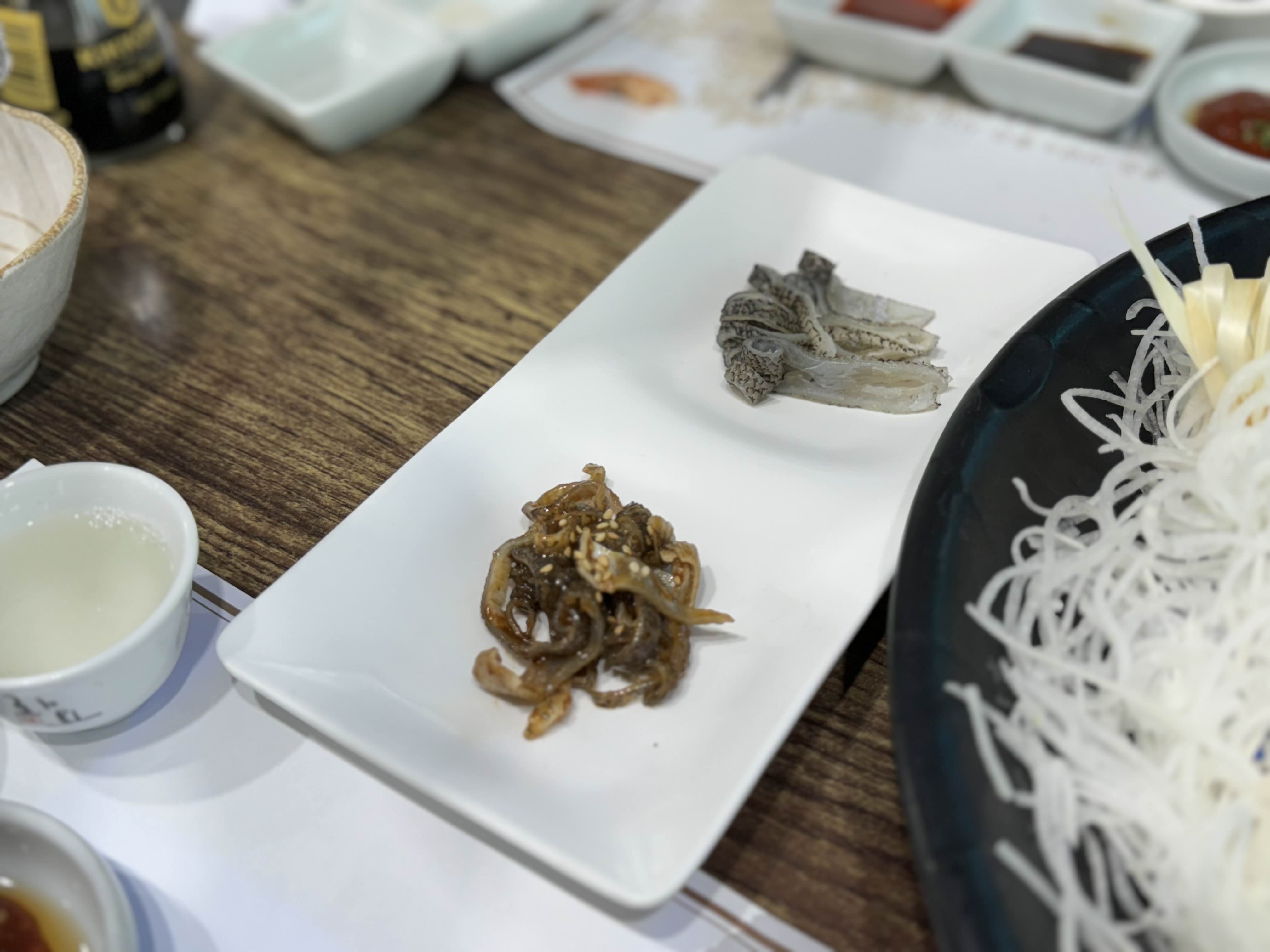 뒤이어 껍질도 나왔는데 쫄깃한 식감은 좋았는데 별다른 맛은 안났습니다.