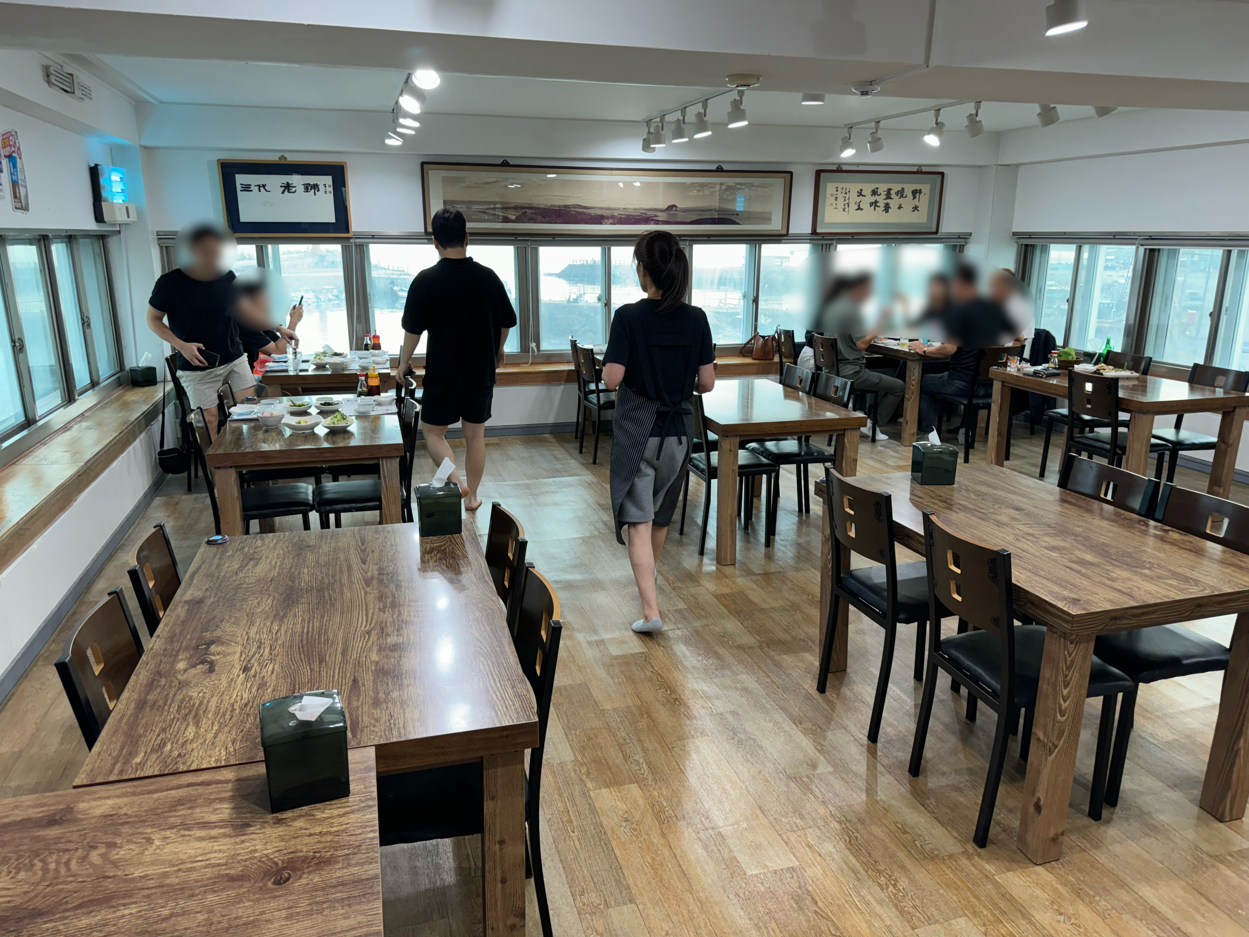 1층은 주로 요리를 만드는 곳이고 2층이 식당이었습니다. 산방산이 보이는 뷰였고 식당의 내부는 남경미락에 비해 좁았습니다.