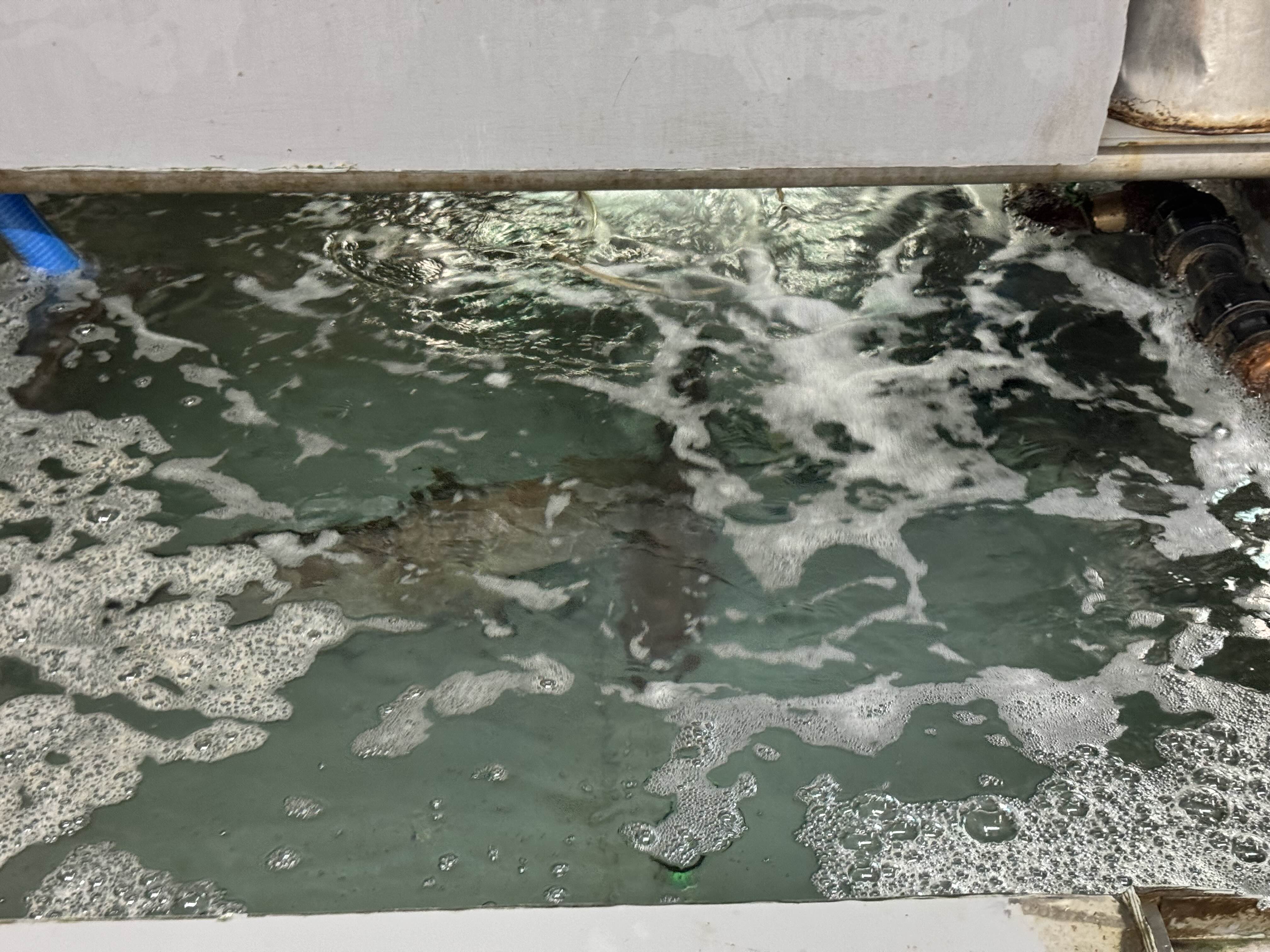 커다란 목욕탕 같은 수조에 커다란 다금바리들이 있습니다.
