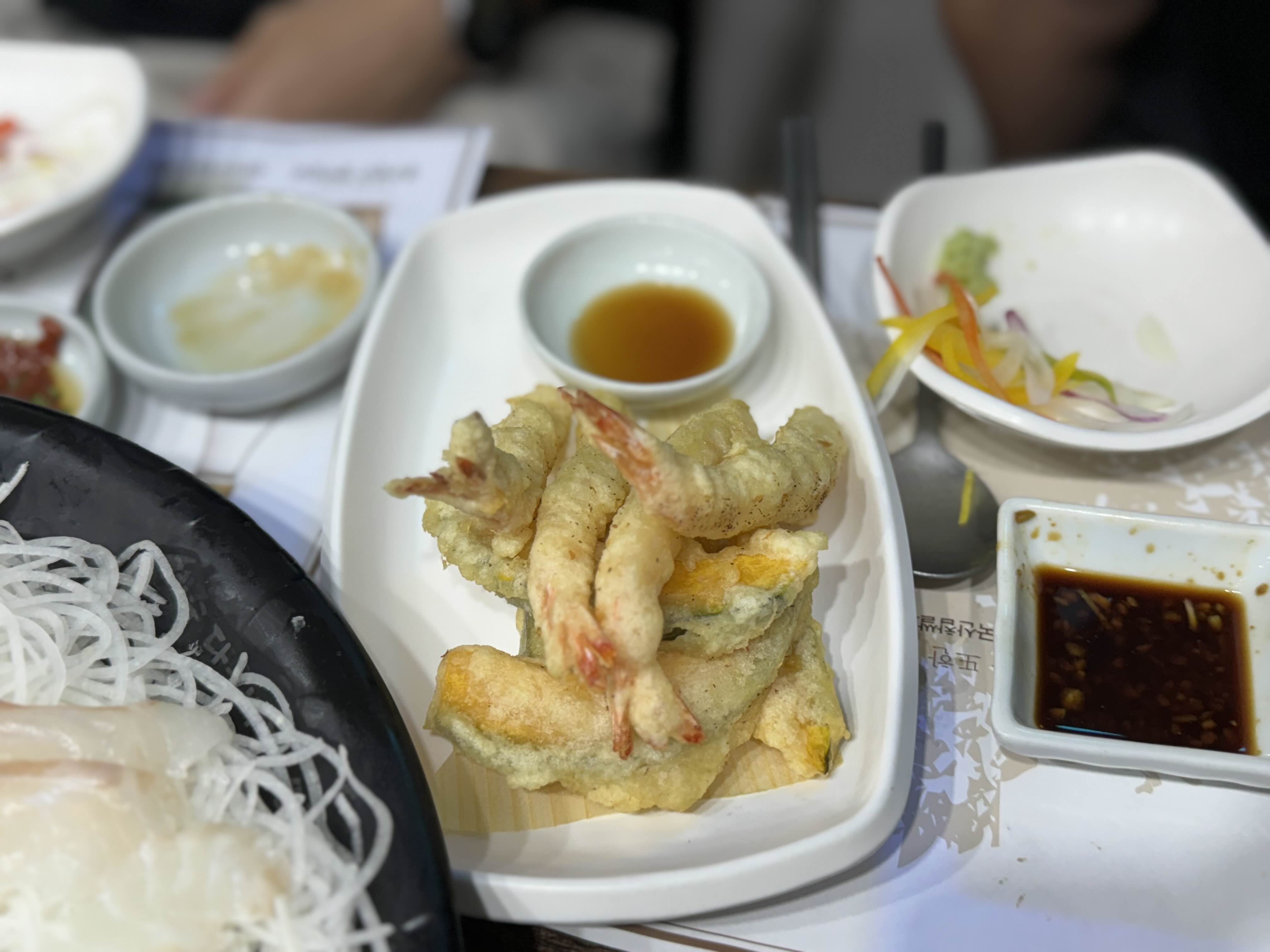 뒤이어 새우와 단호박 튀김이 나왔는데 바삭하니 맛있었습니다.