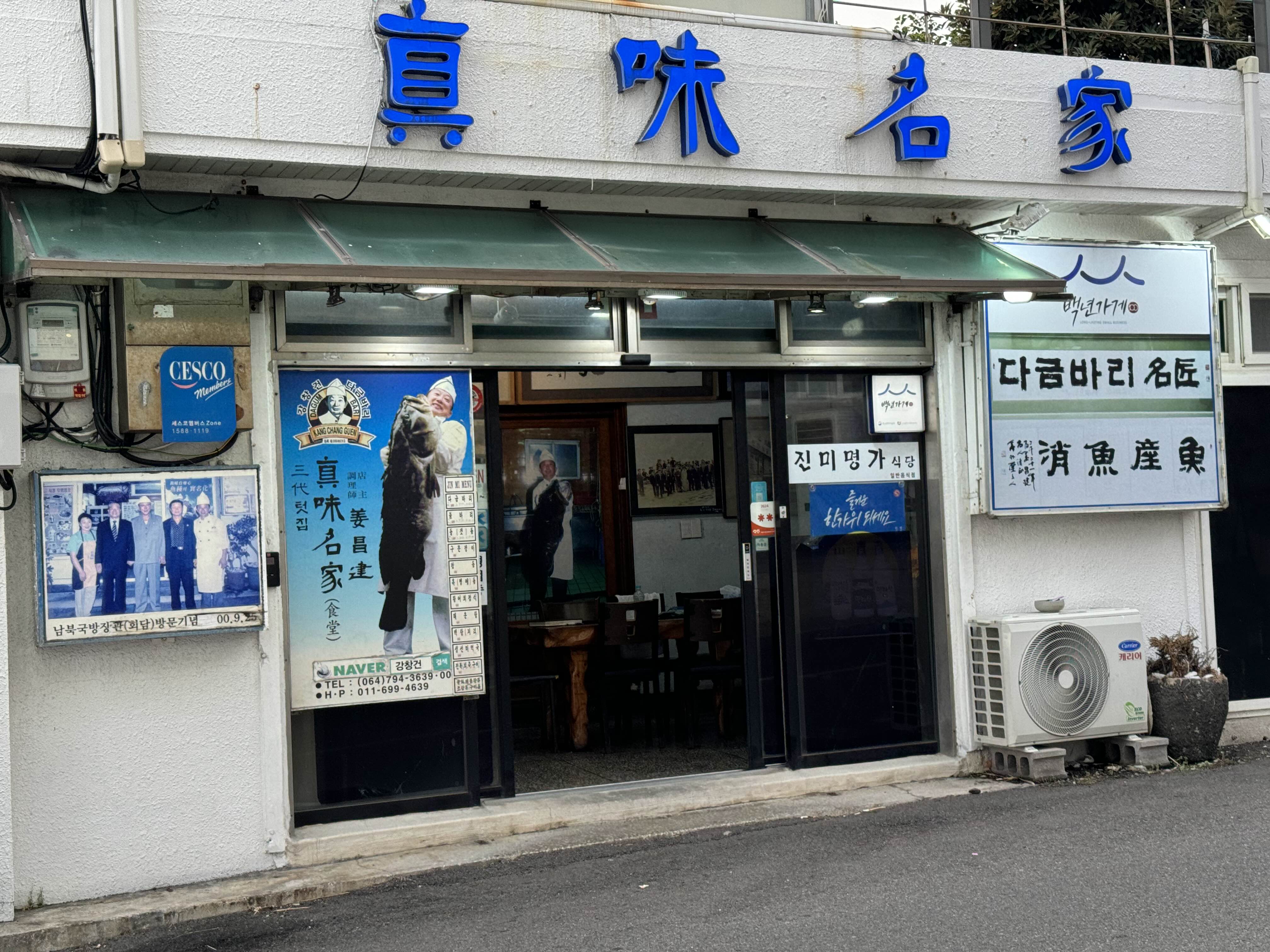 제주도는 예전부터 다금바리(표준어 : 자바리)가 귀한 생선으로 유명했습니다. 다금바리를 취급하는 여러 유명 식당중에서 서귀포에 진미명가와 남경미락이 유명합니다. 이전에 남경미락에서 돌돔을 한번 먹어봐서 이번엔 다금바리 명인 강창건 사장님께서 운영중인 진미명가에서 다금바리를 먹어보기 위하여 방문했습니다.