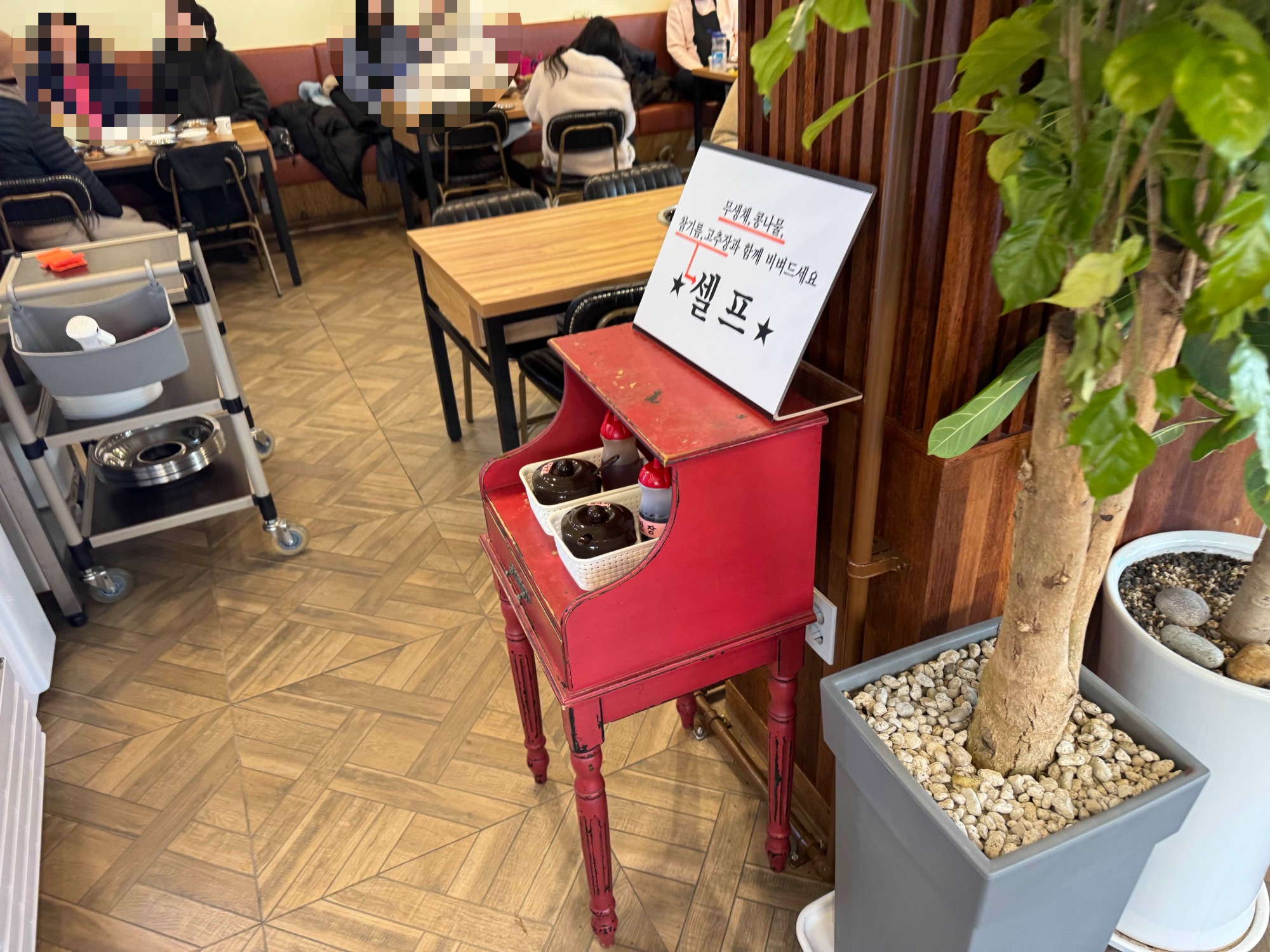 반찬은 셀프는 아니고 요청하면 가져다주십니다.