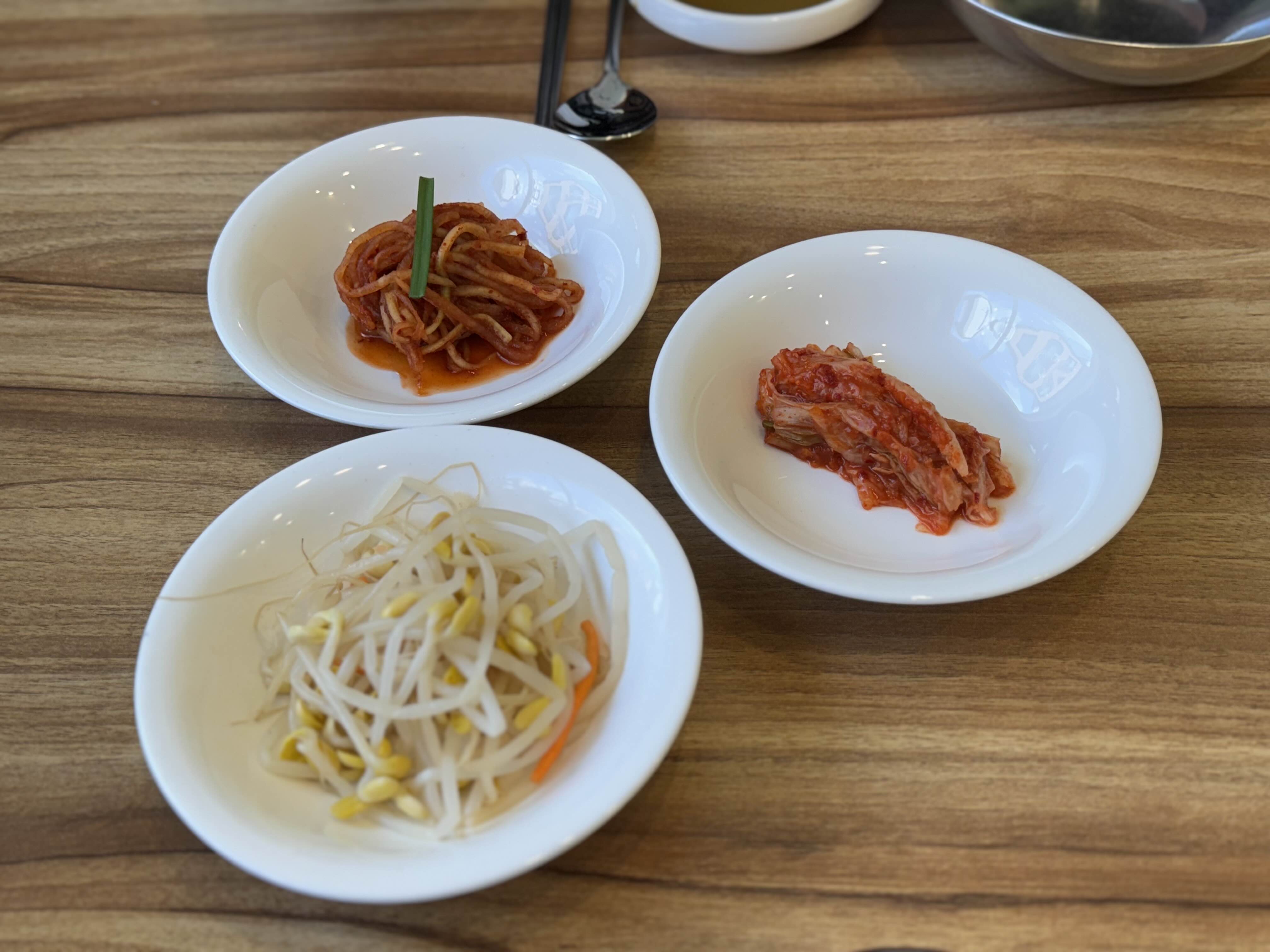 기본찬으로는 배추김치, 무생채, 콩나물무침이 나옵니다. 김치는 평범했는데 무생채와 콩나물 무침이 정말 맛있었습니다. 콩나물무침은 참기름과 소금간이 아주 좋았고 무생채는 은은한 단맛과 양념이 아주 잘 어울렸습니다.