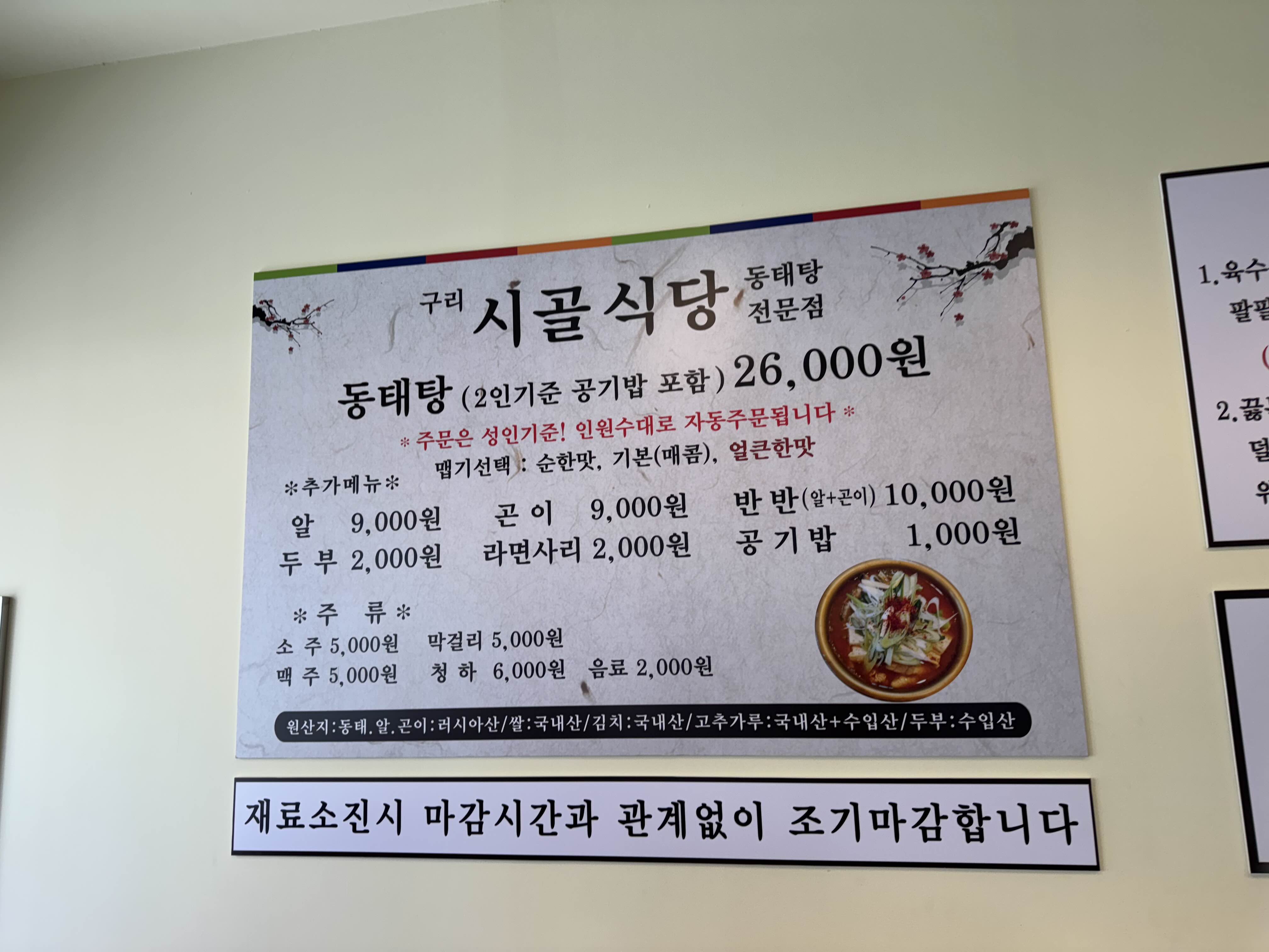 구리에서 동태탕 단일 메뉴로 유명한 구리 시골식당이 용인 동백에도 생겨서 방문했습니다. 경기 광주와 오산에도 있는데 경기 광주 같은 경우에는 웨이팅이 있을 정도로 맛집으로 소문났습니다.