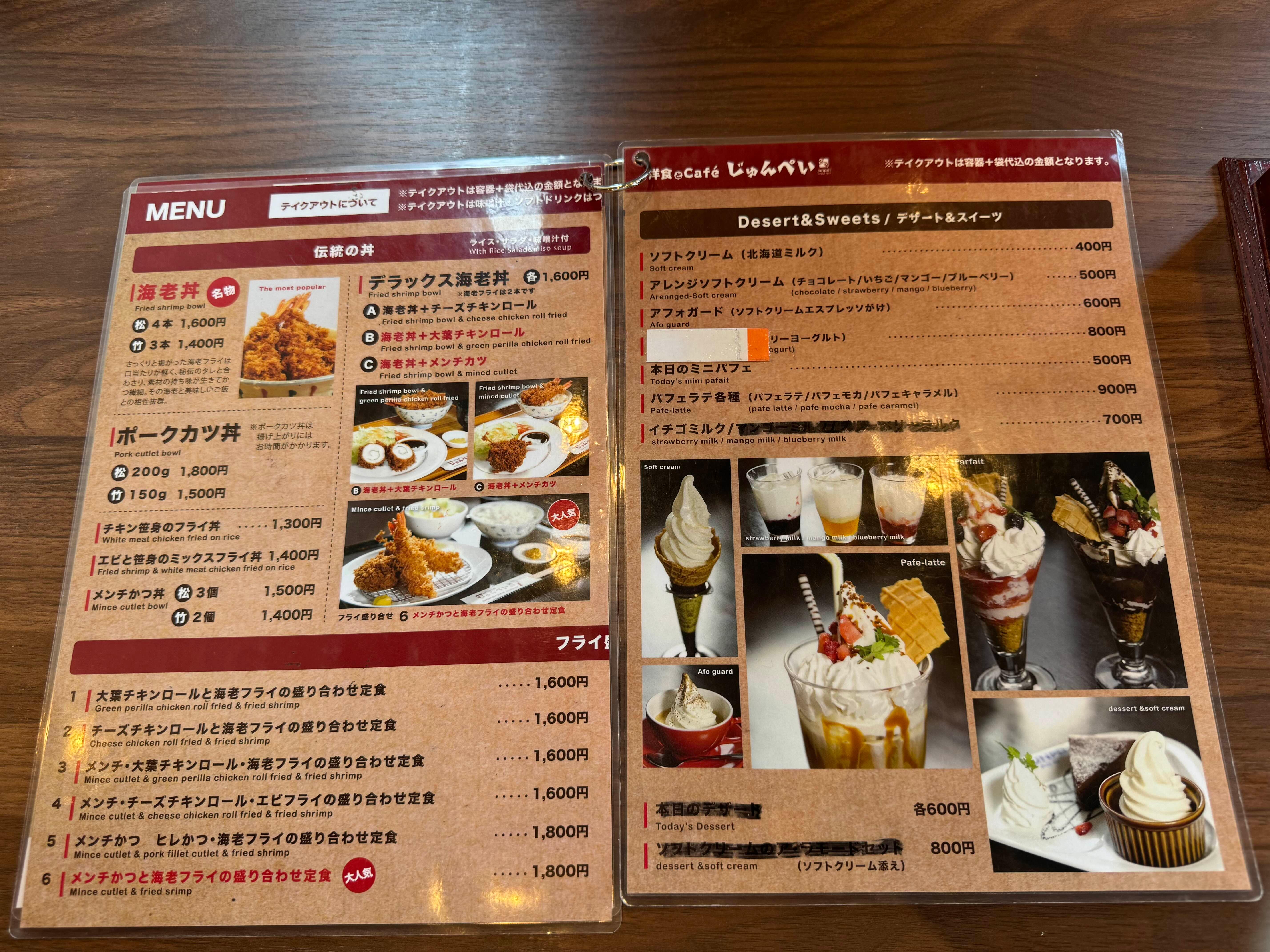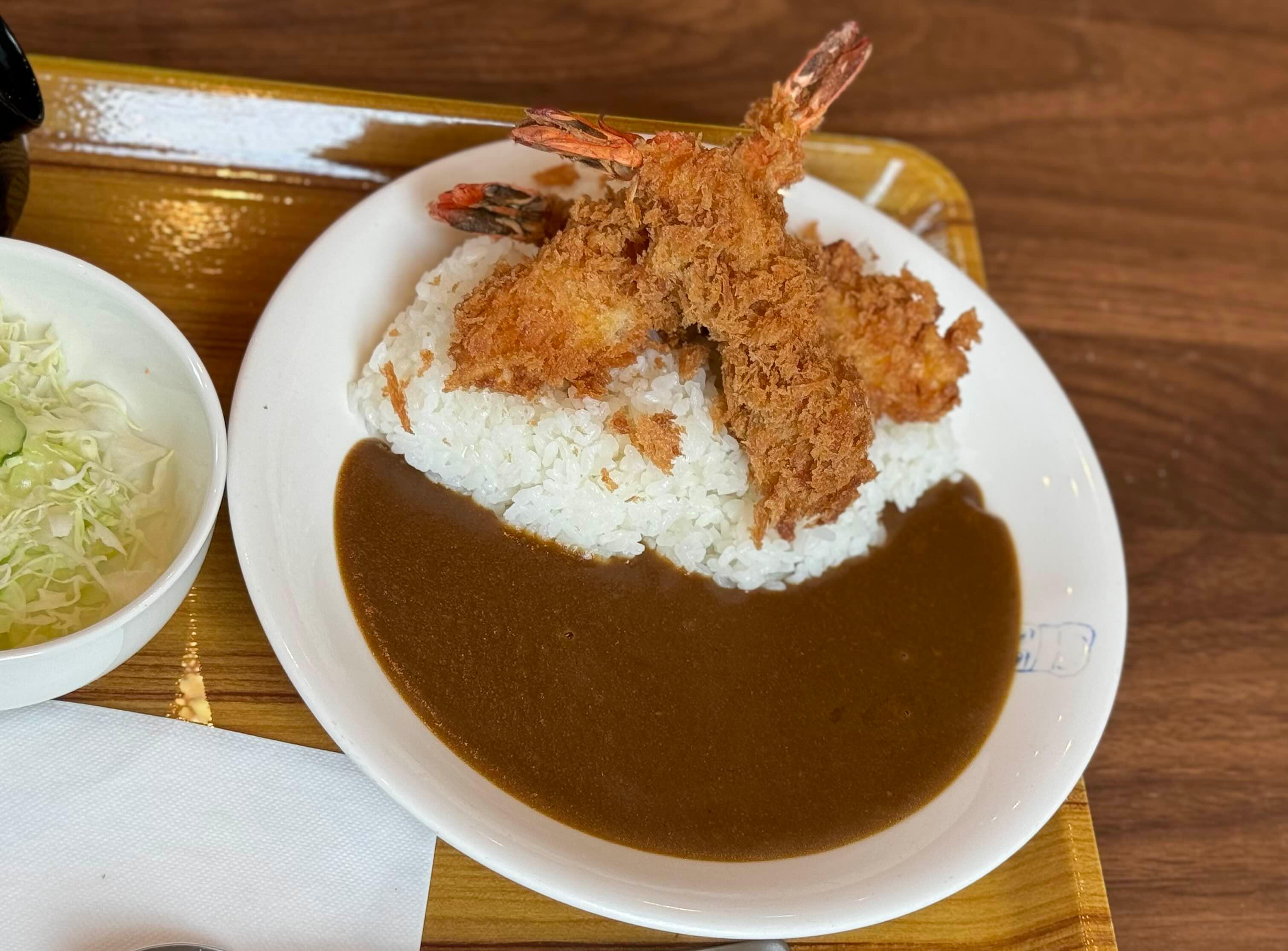 새우튀김덮밥(4덩이 1,600엔)과 새우카레덮밥을 주문했습니다.