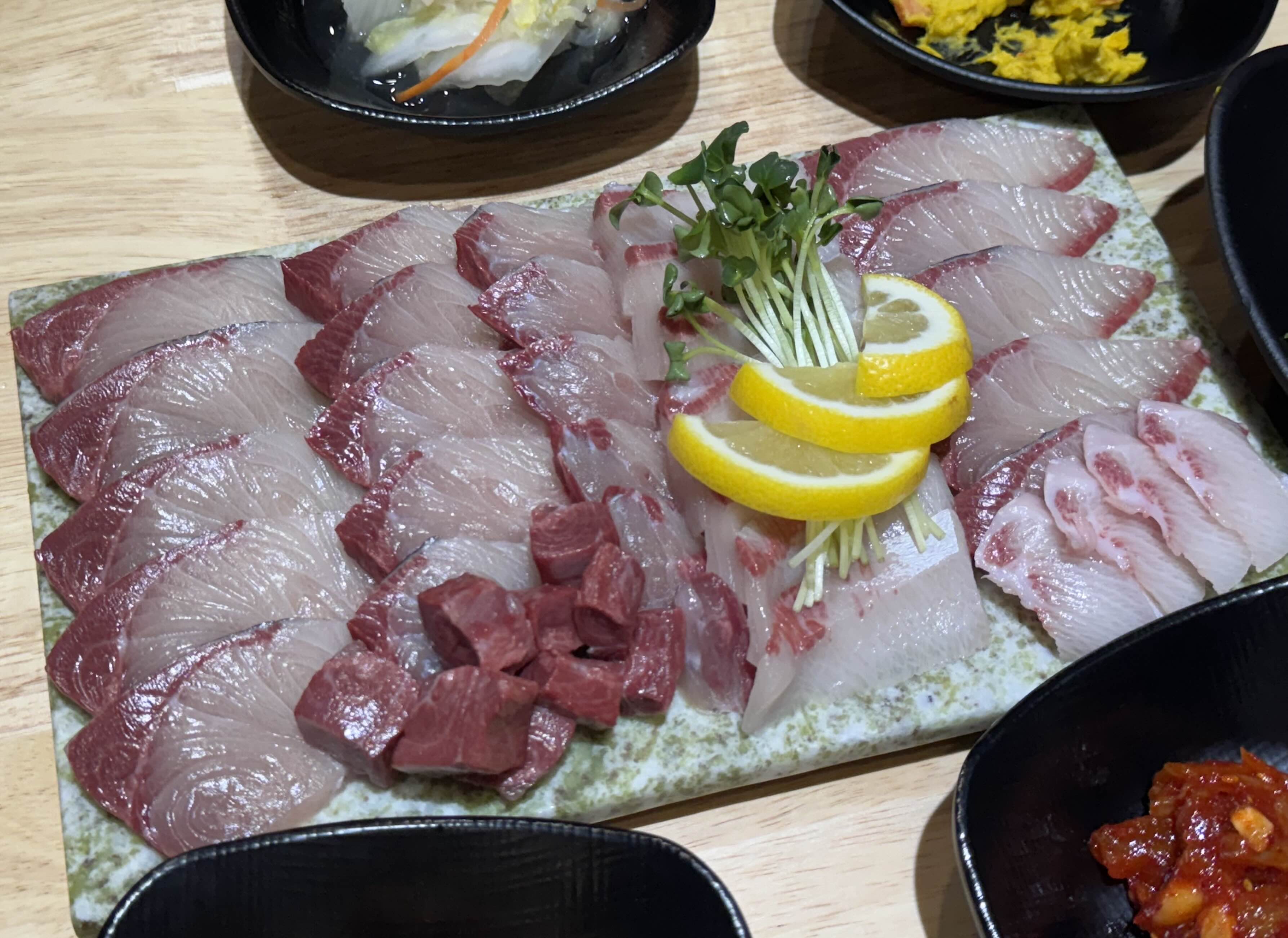 2월초 재방문 하였을 때 방어 사진입니다. 7천원이 내렸는데도 배꼽살과 뱃살등도 푸짐하고 살도 많고 싱싱할때만 먹을 수 있는 혈압육도 좀 있었습니다. 맛은 여전히 좋았습니다.