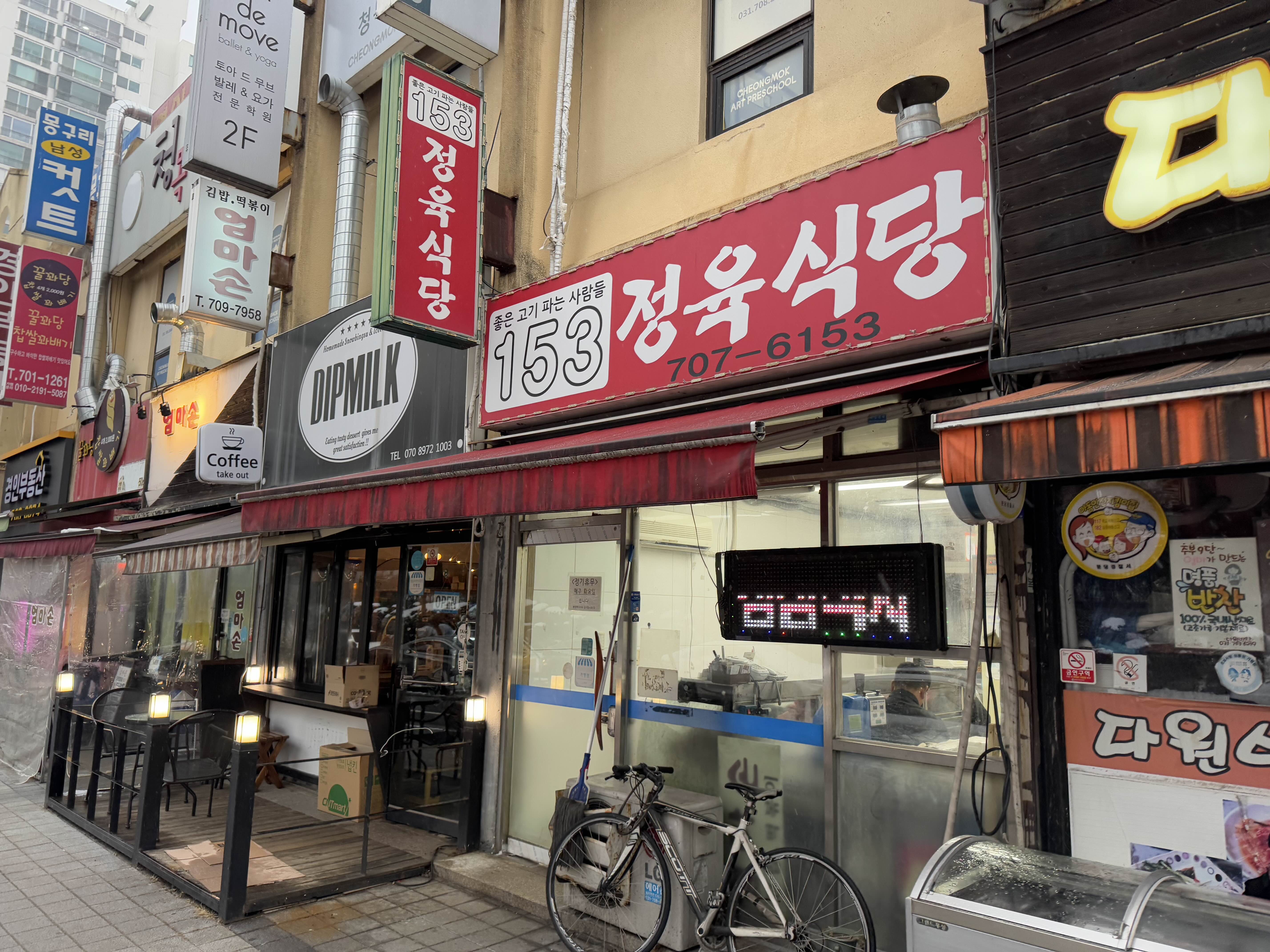 분당 효자촌 미래타운 아파트 상가에 있는 153정육식당에 방문했습니다. 간판에서부터 내공이 보입니다.