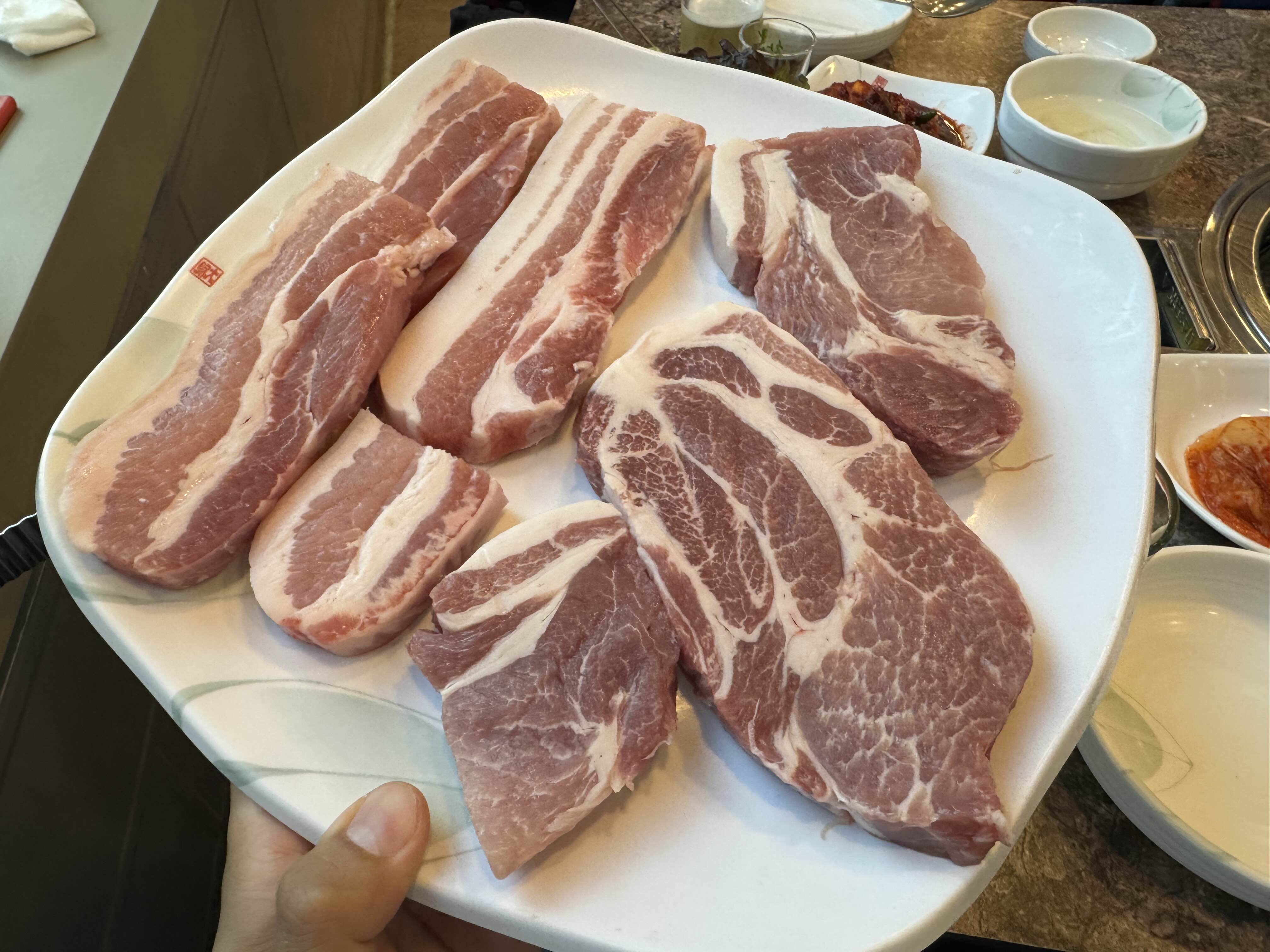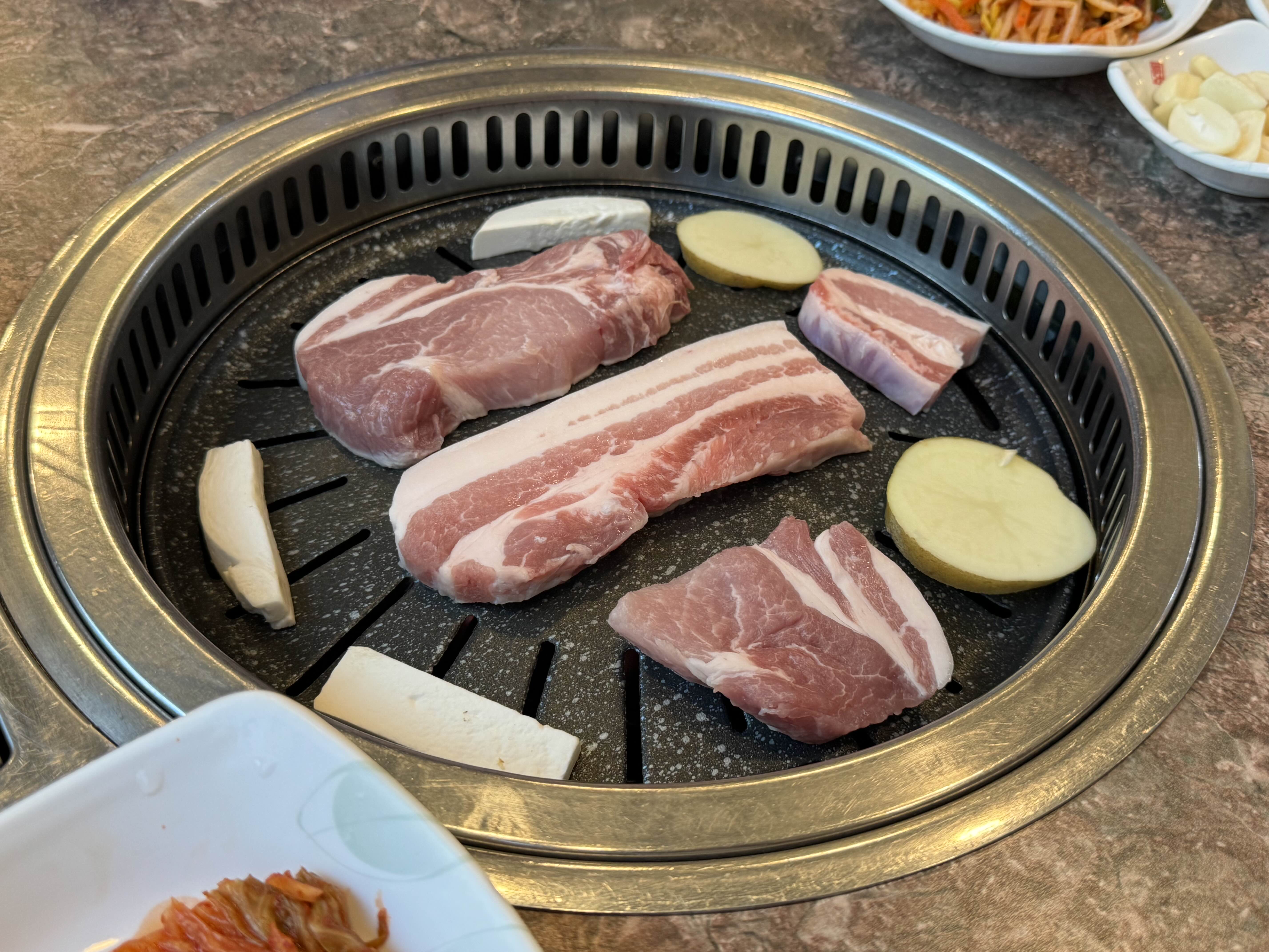 삼겹살은 지방과 살코기의 비율이 아주 좋아 고소하도 맛있었습니다. 오겹처럼 껍데기가 같이 있는 삼겹살도 있었는데 쫀득한 껍데기의 식감도 같이 즐기니 좋았습니다.