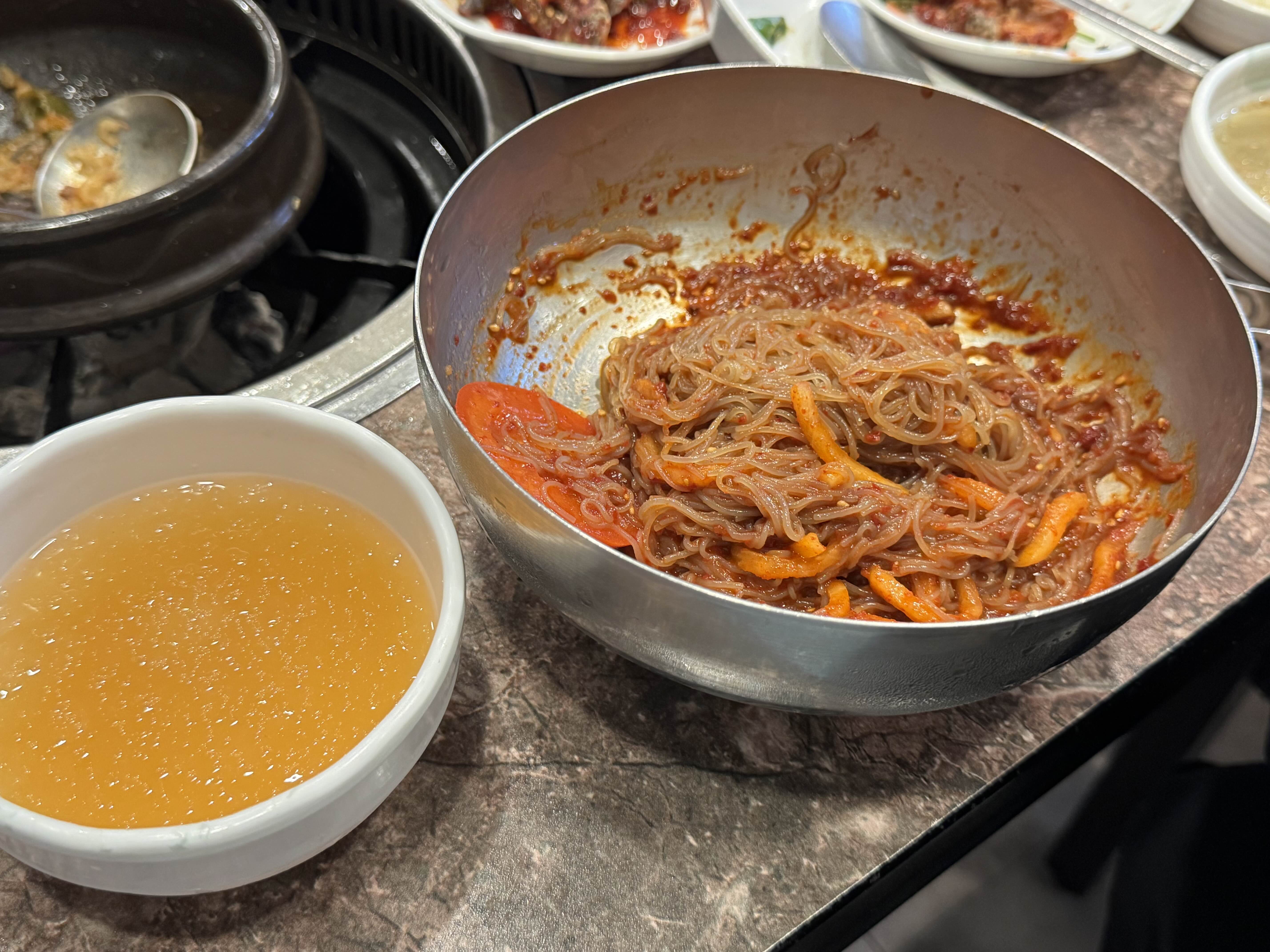비빔냉면은 매콤한 맛이 꽤 있었는데 많이 맵지는 않았고 물냉면 육수를 좀 섞어 먹으니 맛이 좋았습니다.