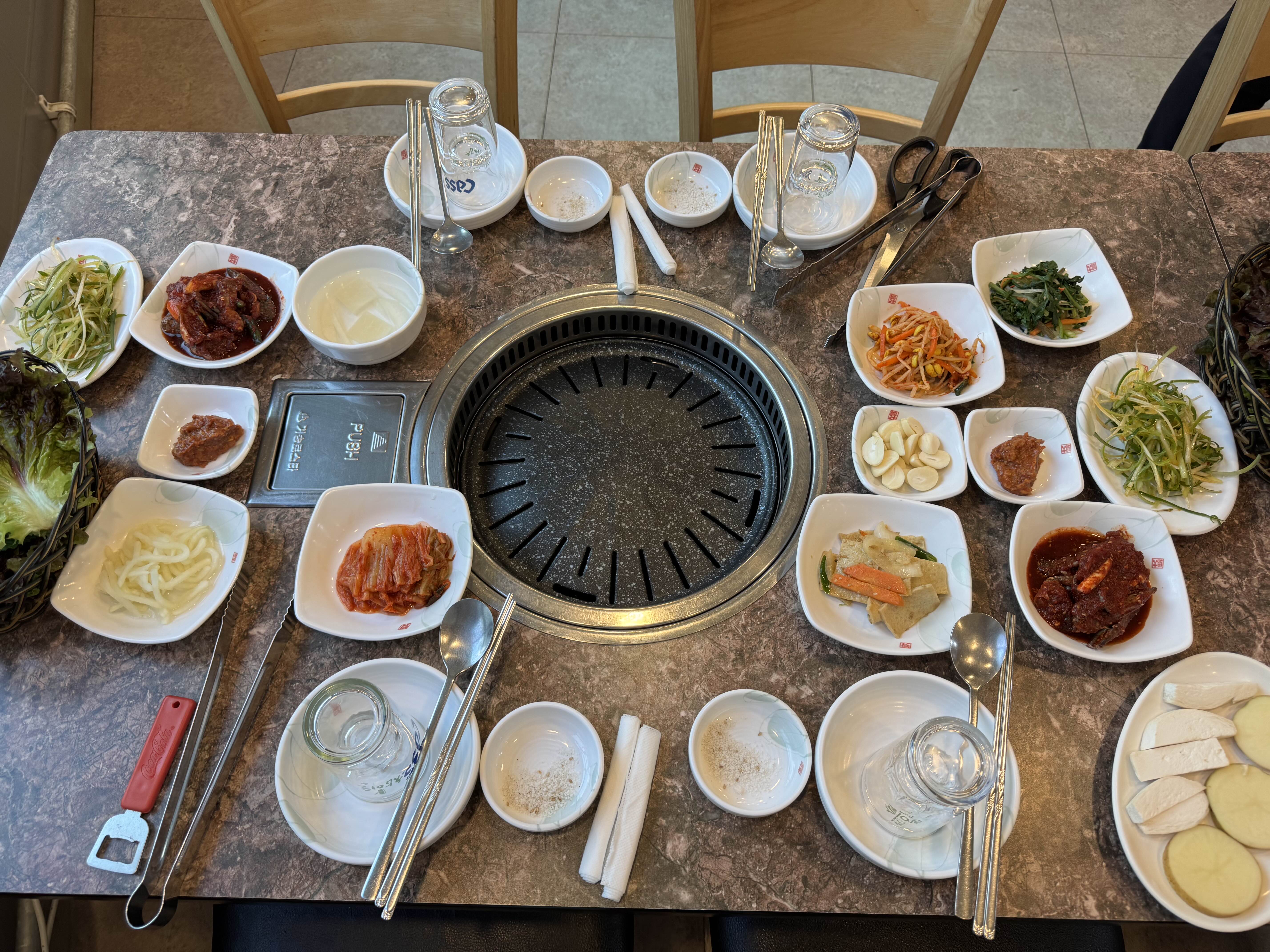 마늘 기름장까지 요청해서 같이 구워먹었습니다.