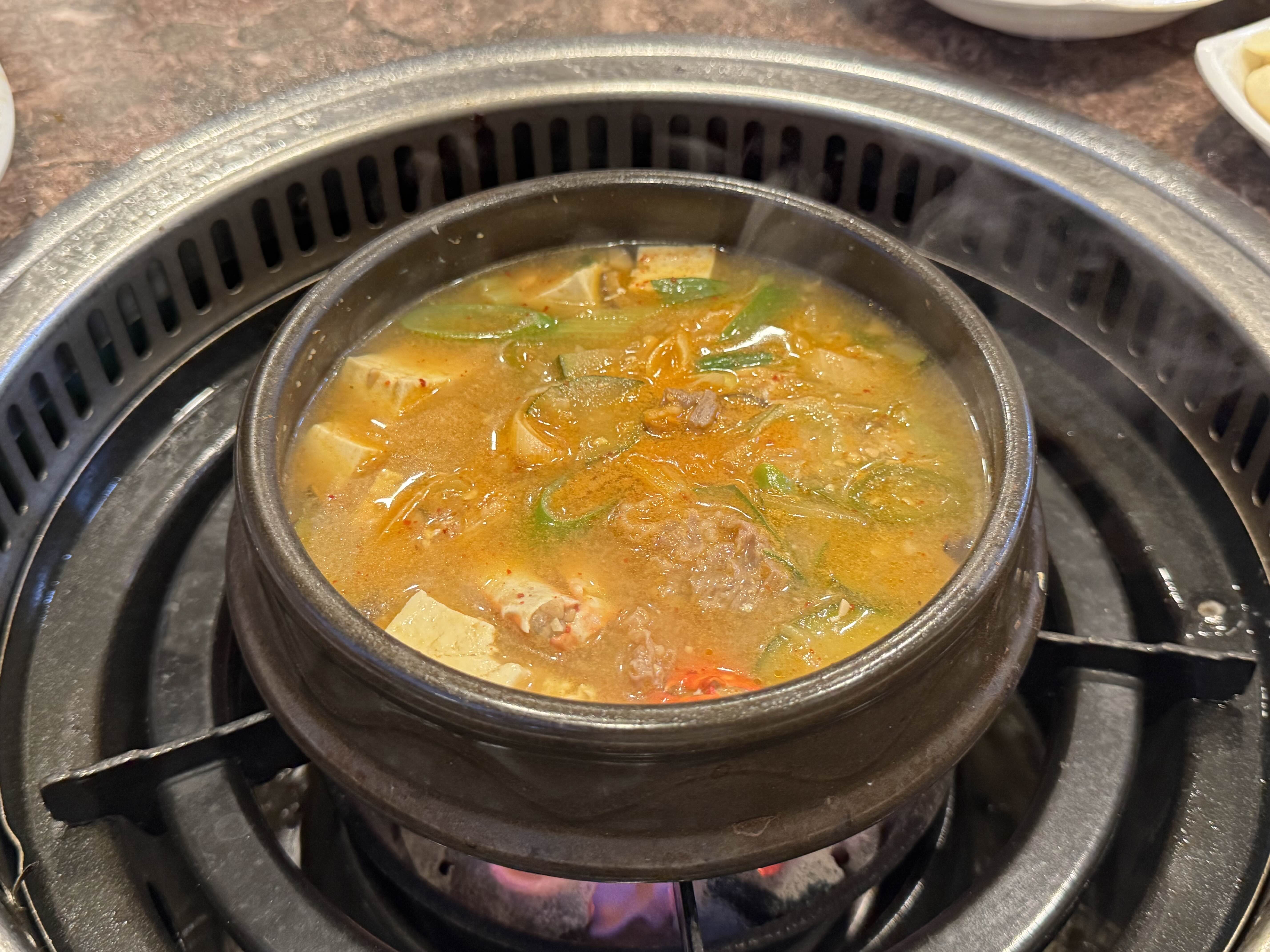 입가심으로 차돌된장찌개와 비빔냉면도 주문했습니다. 차돌된장찌개는 10,000원의 가격 대비 차돌박이는 많이 들어있지 않았으나 두부는 꽤 많이 들어있었고 국물 맛도 괜찮았습니다.