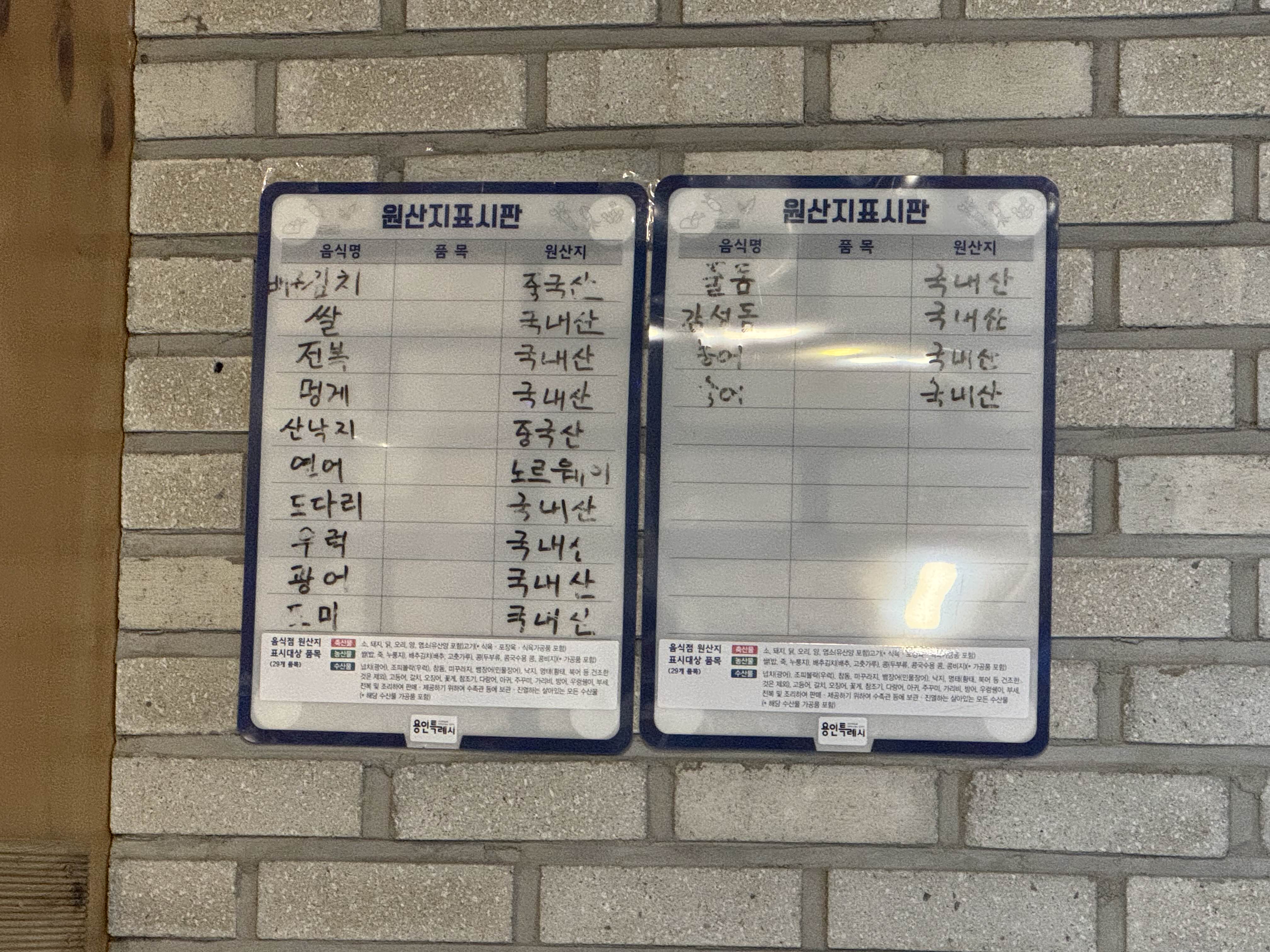 김치와 낙지는 중국산, 연어는 노르웨이산, 나머지 식재료는 국내산을 사용합니다.