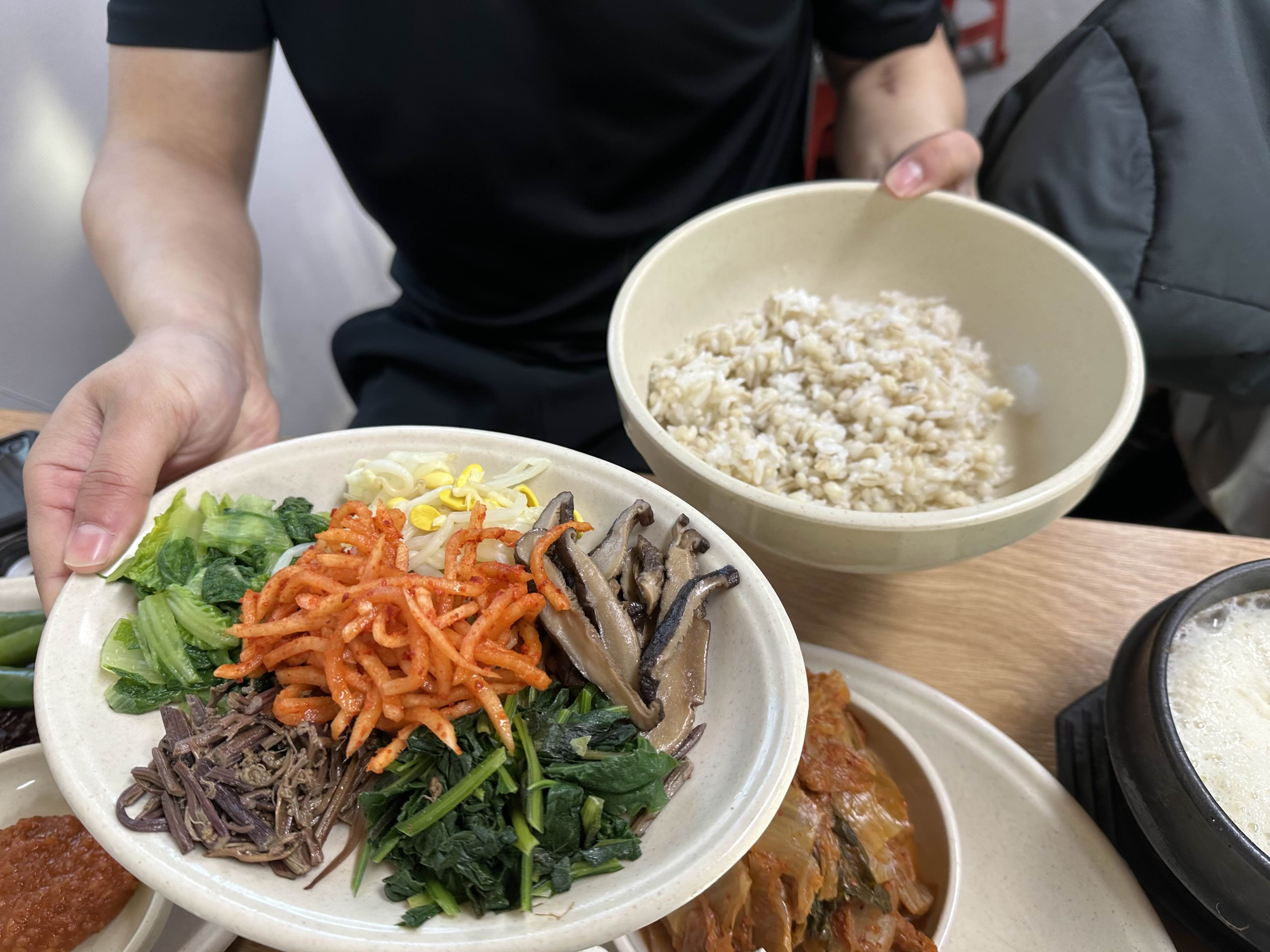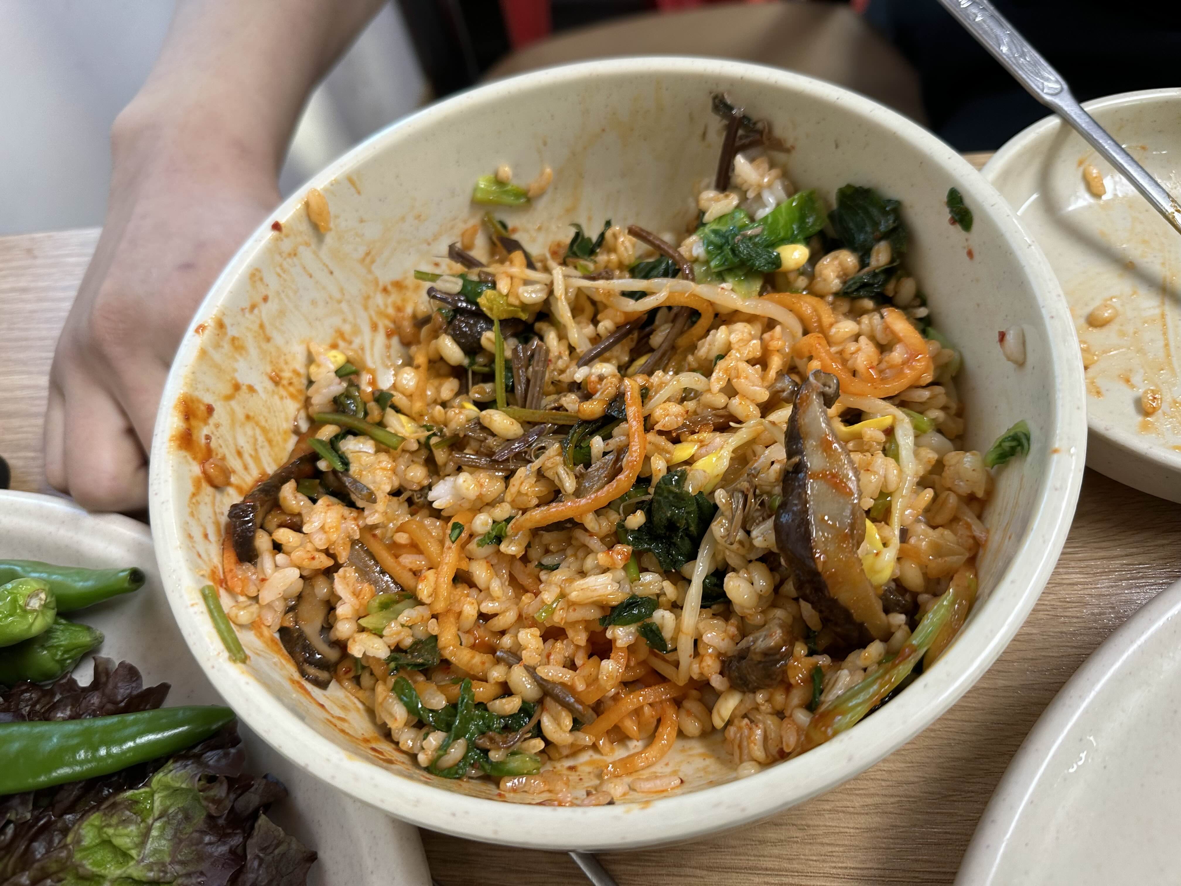 비빔밥입니다 . 채소와 버섯이 푸짐하게 있습니다.