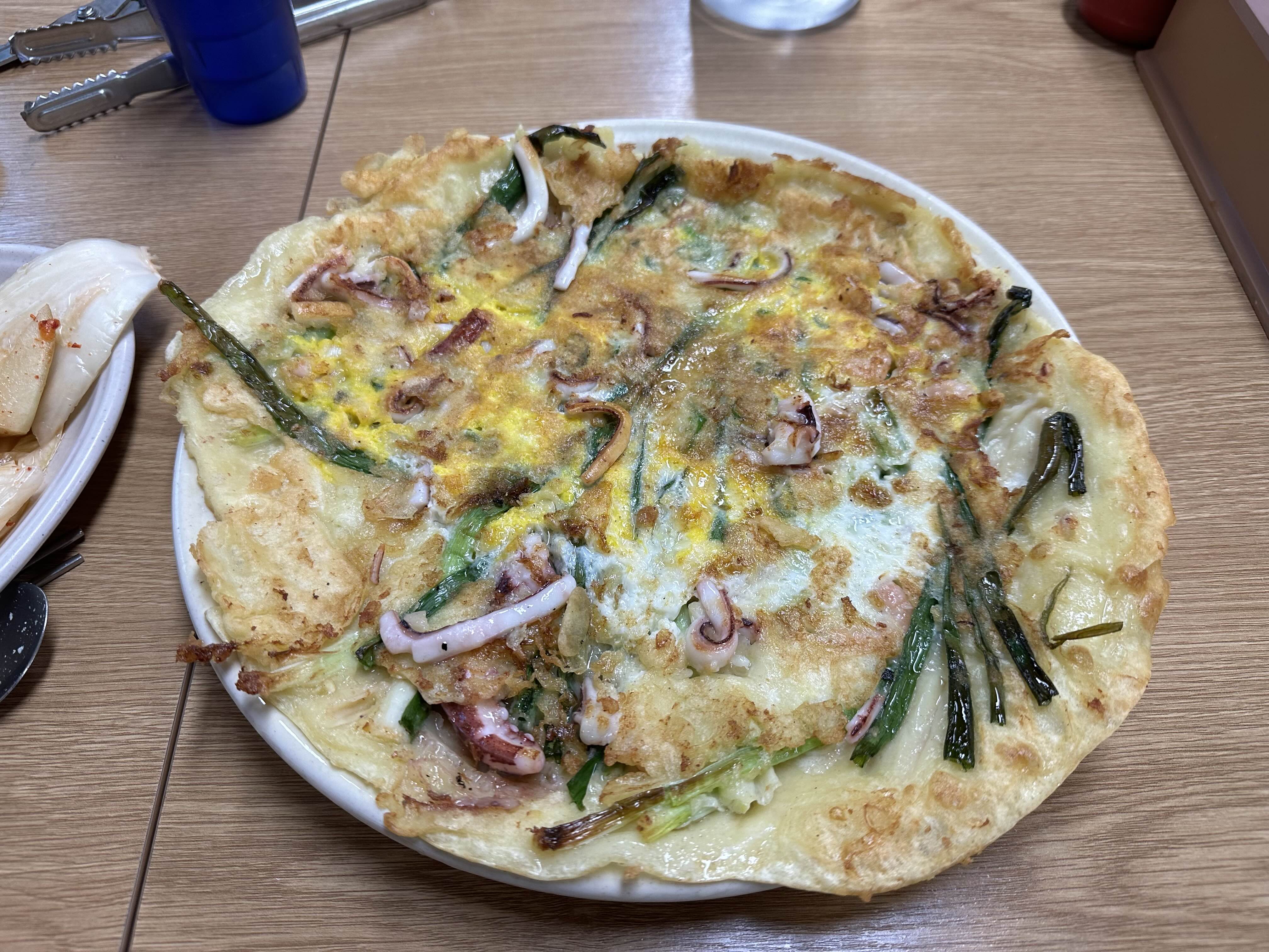 파전이 나왔습니다. 오징어가 실하게 들어있습니다.
