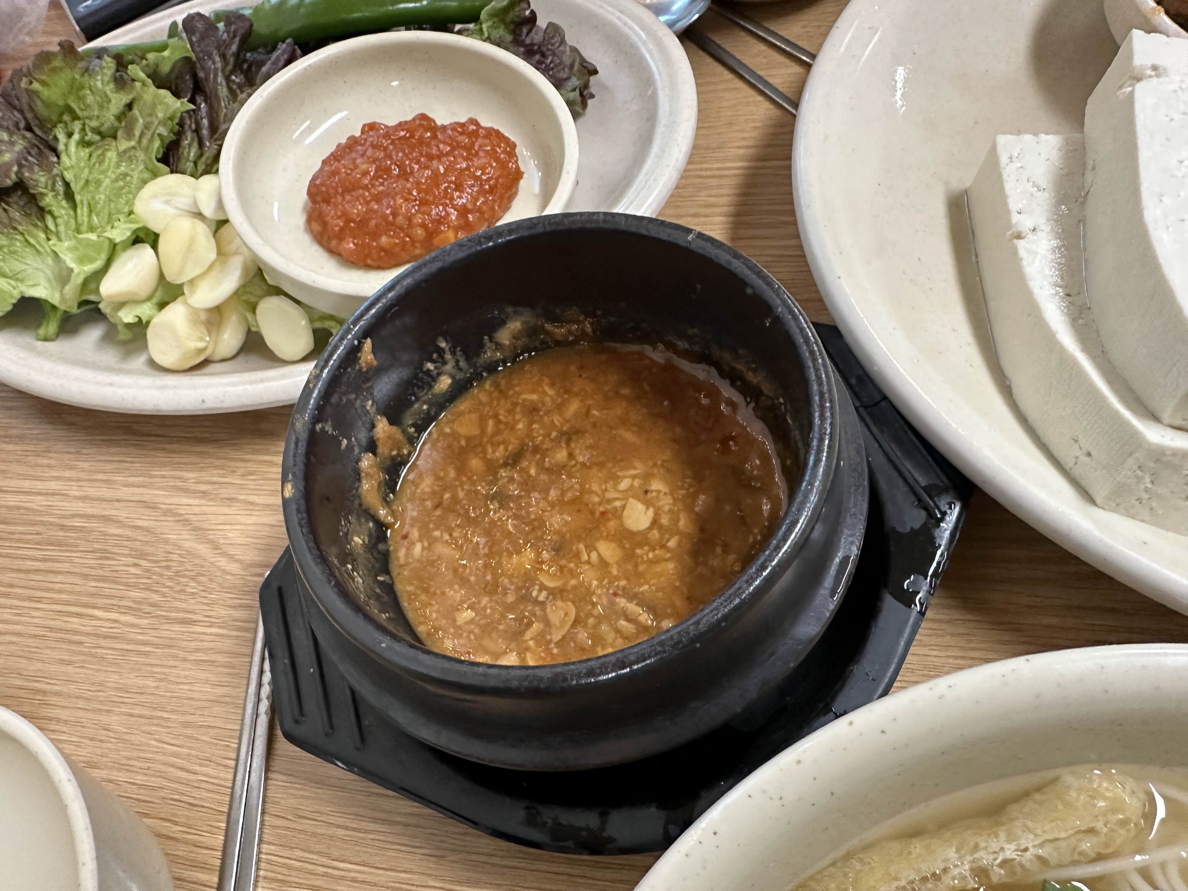 비빔밥에는 강된장과 콩비지도 같이 줍니다.