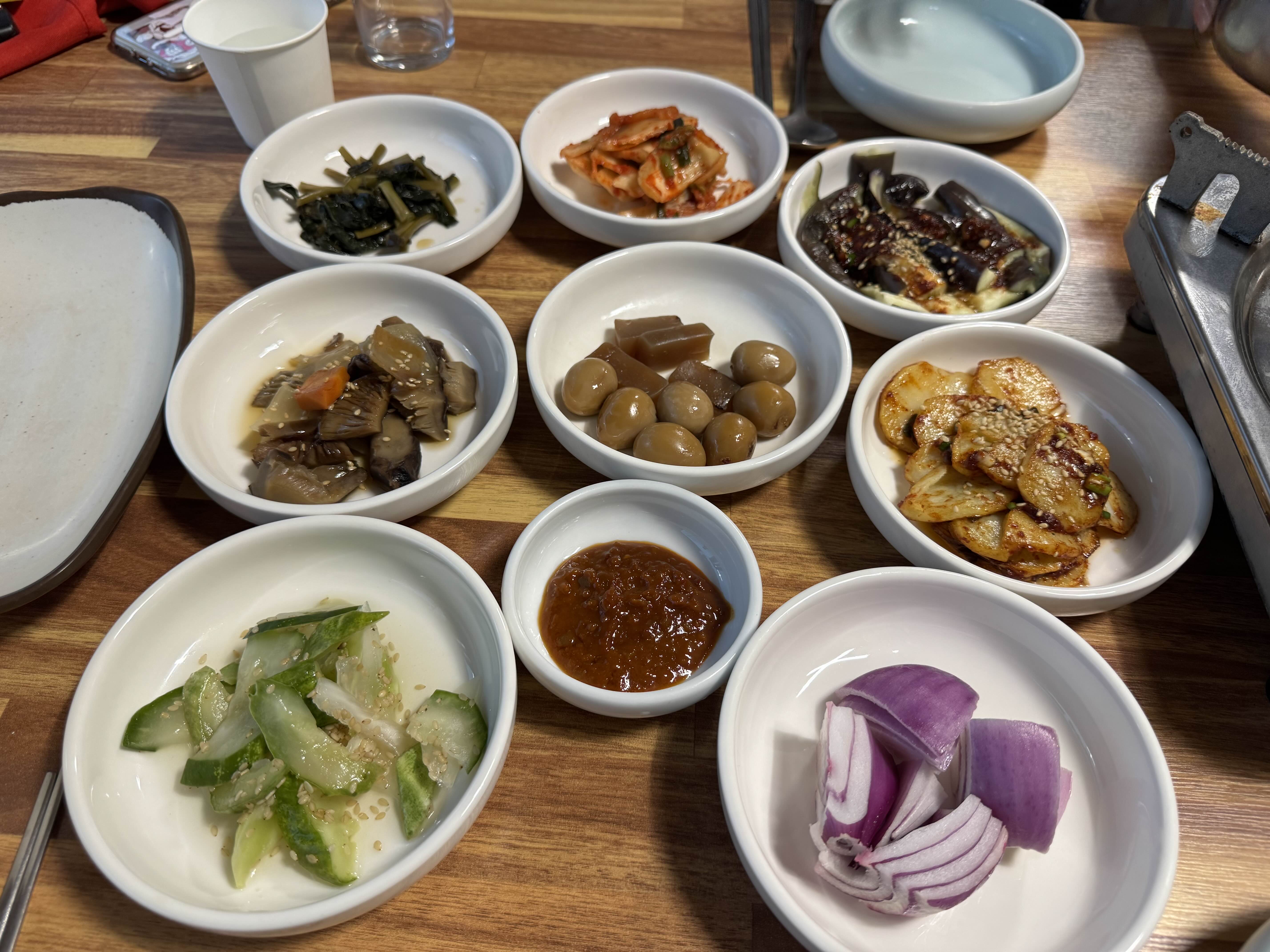 밑반찬이 상당합니다. 이 근처 식당들이 좀 있는데 대부분 직접 텃밭에서 기른 채소들로 반찬을 내는 것 같습니다. 반찬들 다 맛이 좋았습니다.