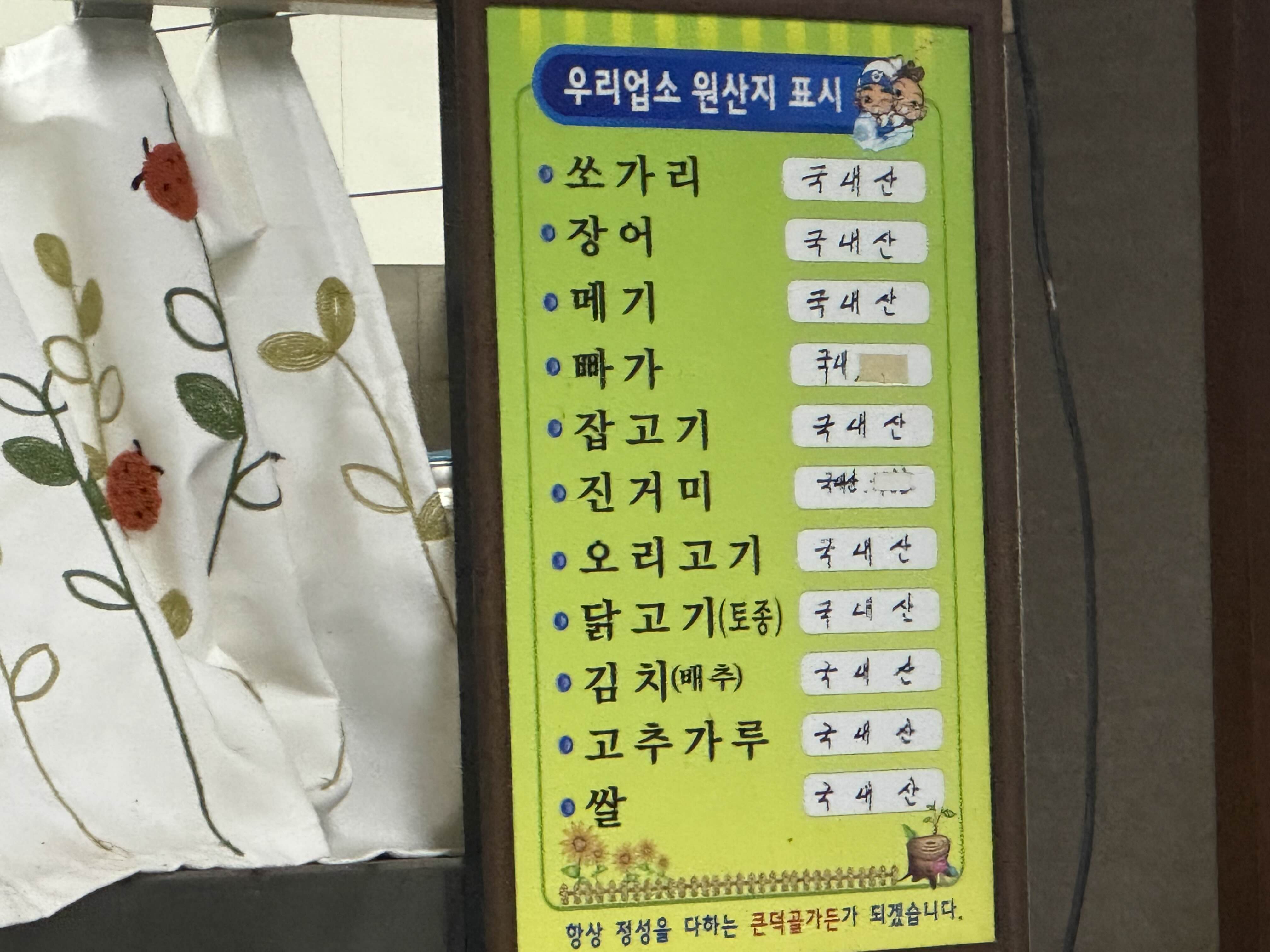 생선들과 쌀, 고춧가루 모두 국내산을 사용중입니다.