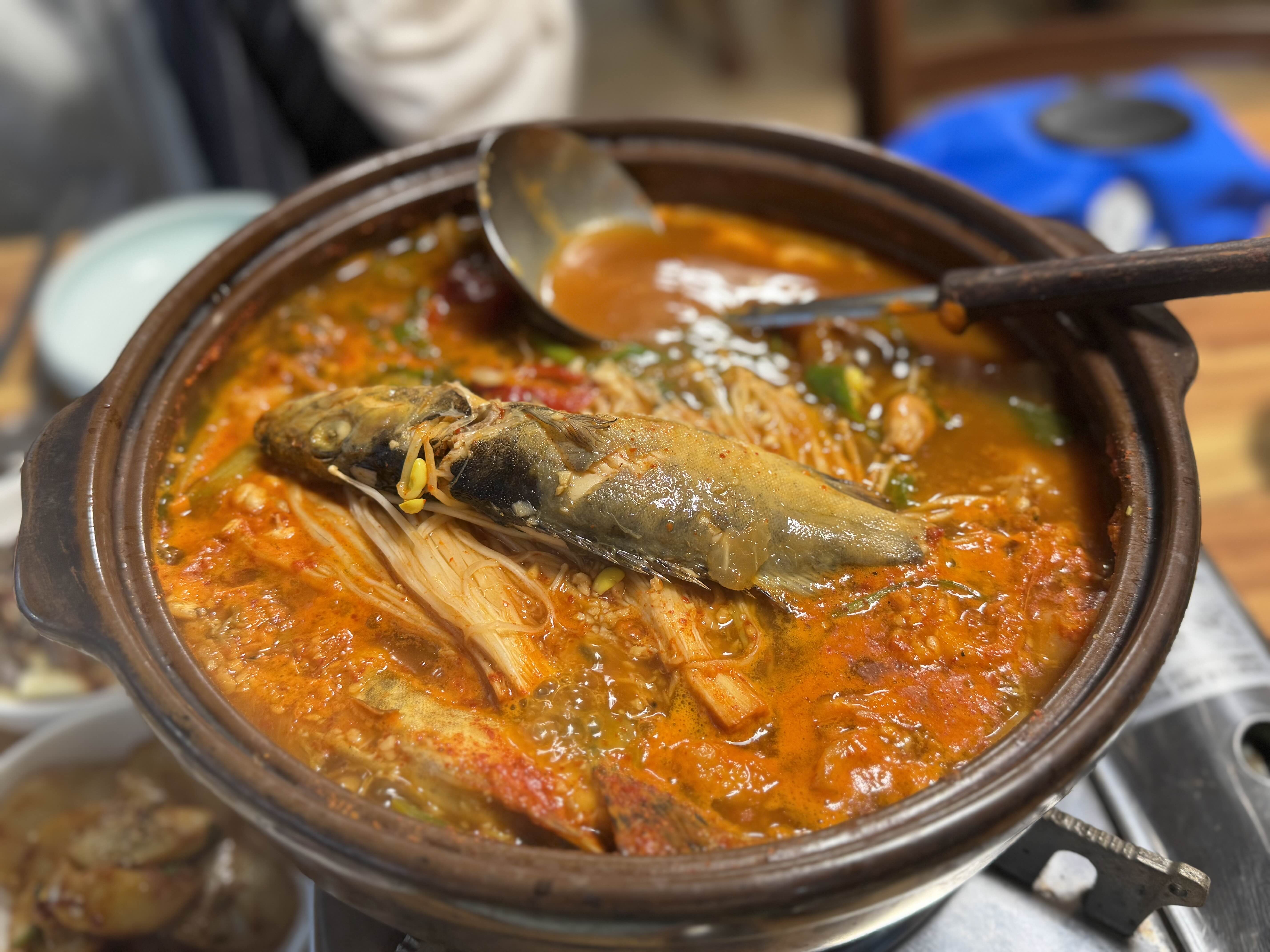 쏘가리 매운탕 소짜리를 주문했습니다. 다른 곳에 비해 쏘가리 매운탕 가격이 저렴한 편입니다.
