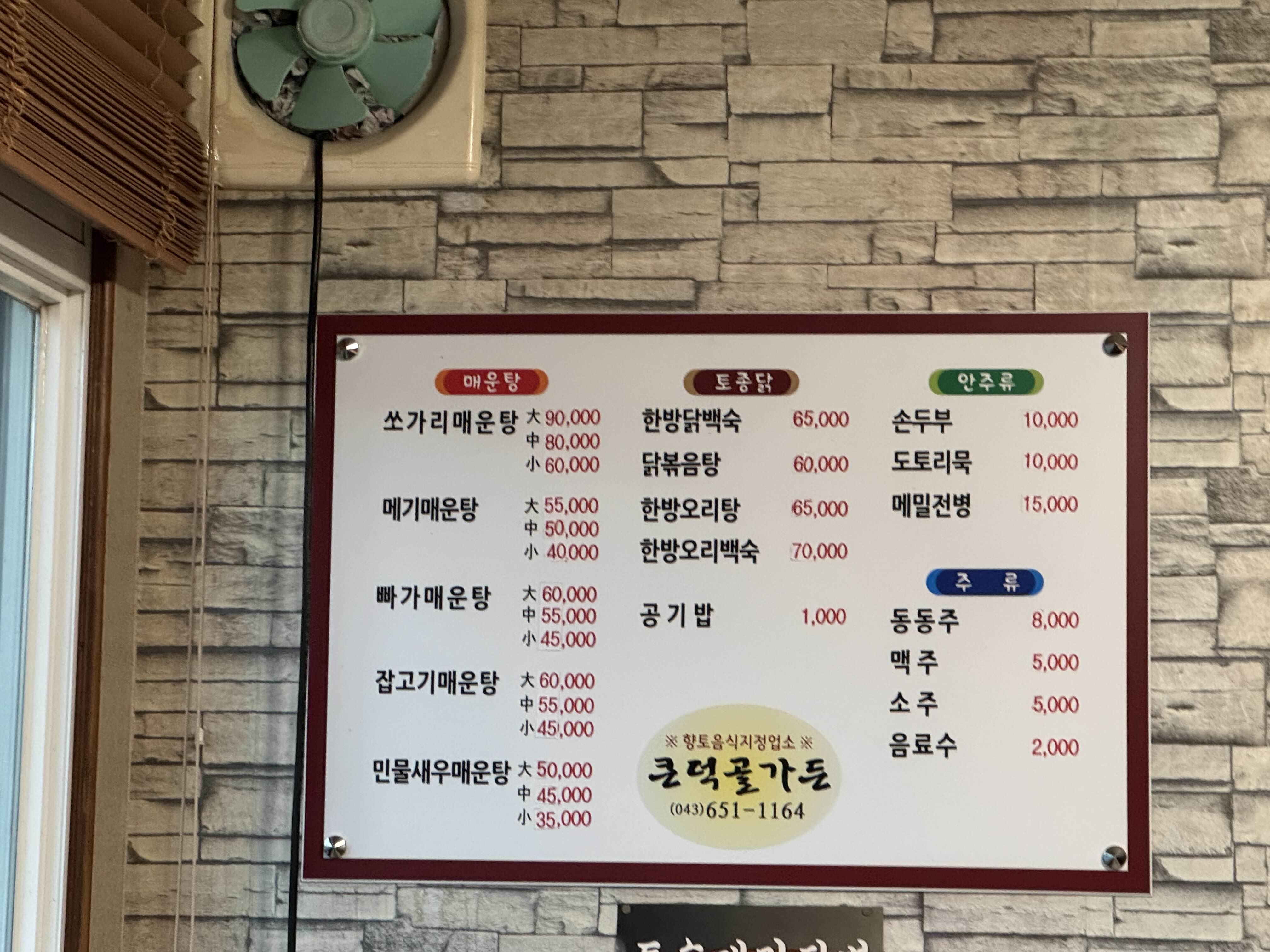 월악유스호스텔에 운좋게 예약을 하고 저녁에 쏘가리 매운탕을 먹으러 뒷편에 바로 있는 큰덕골 가든에 방문했습니다.