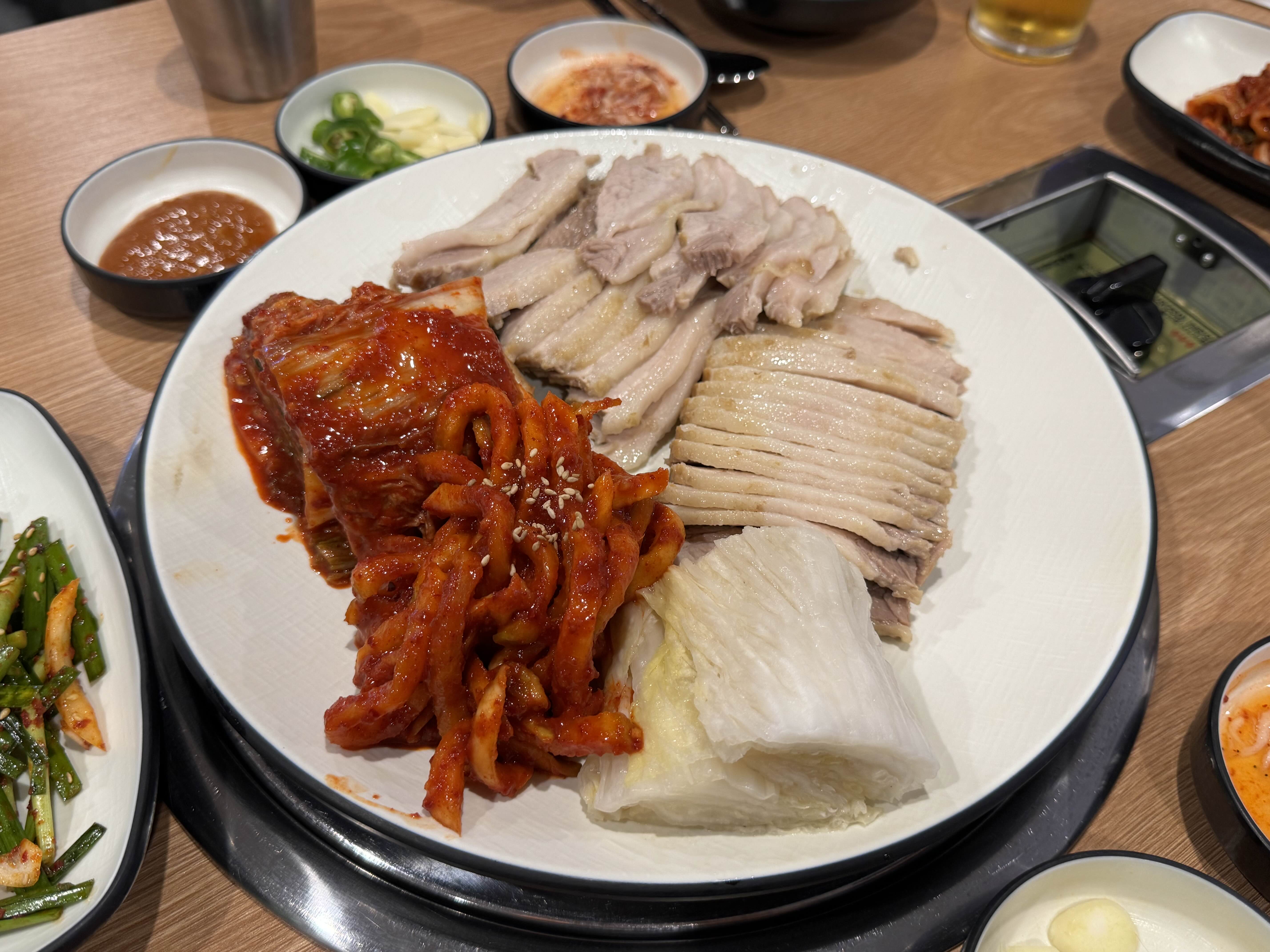 따뜻하게 잘 삶아진 보쌈은 고소하고 부드러웠습니다. 가브리살이어서 더 담백한 맛이었습니다. 한약재 등 맛은 나지 않고 깔끔한 수육입니다.