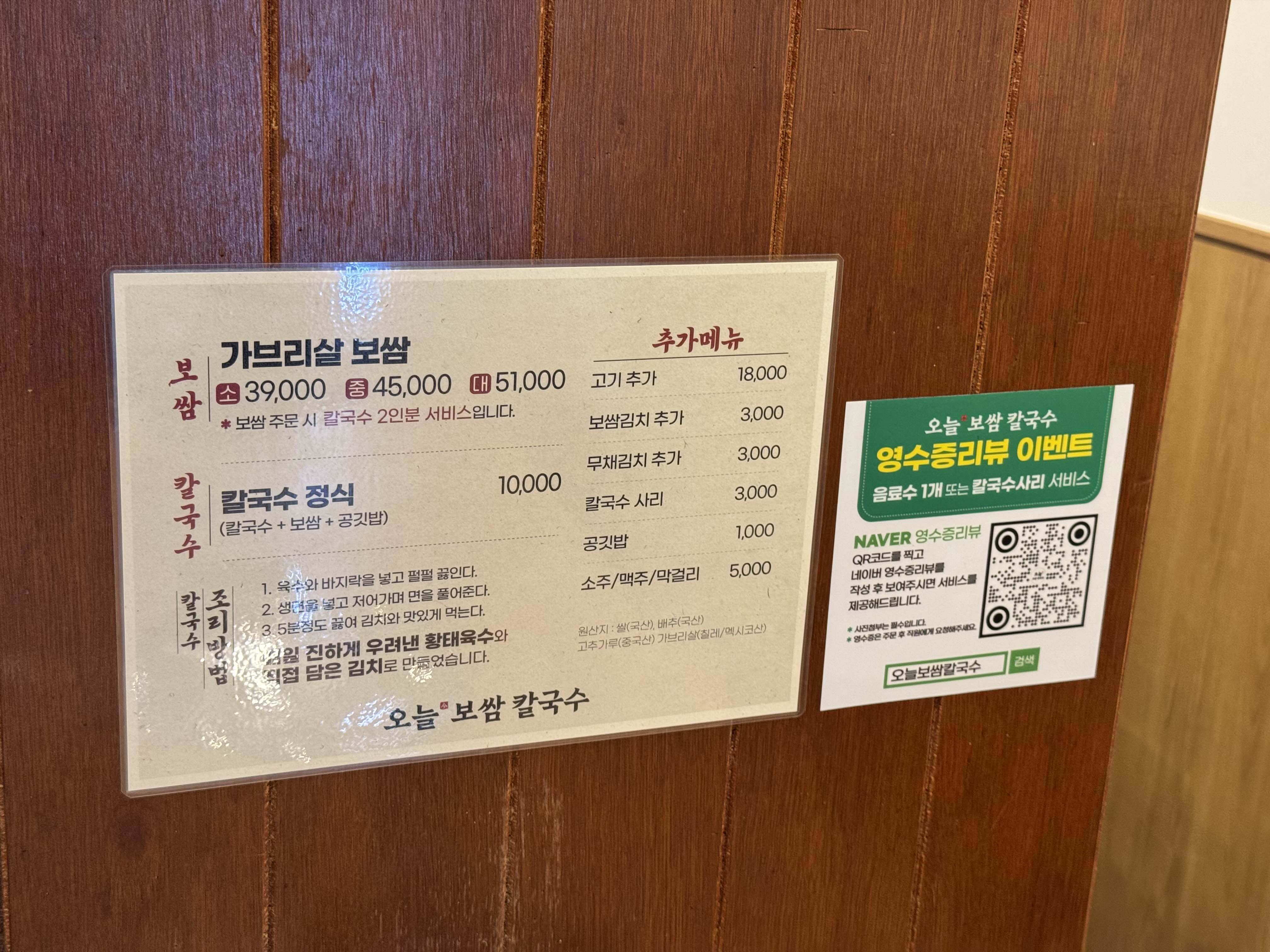 보쌈, 칼국수 심플한 메뉴입니다. 보쌈을 주문하면 칼국수가 서비스고 칼국수를 주문해도 보쌈이 같이 나옵니다.