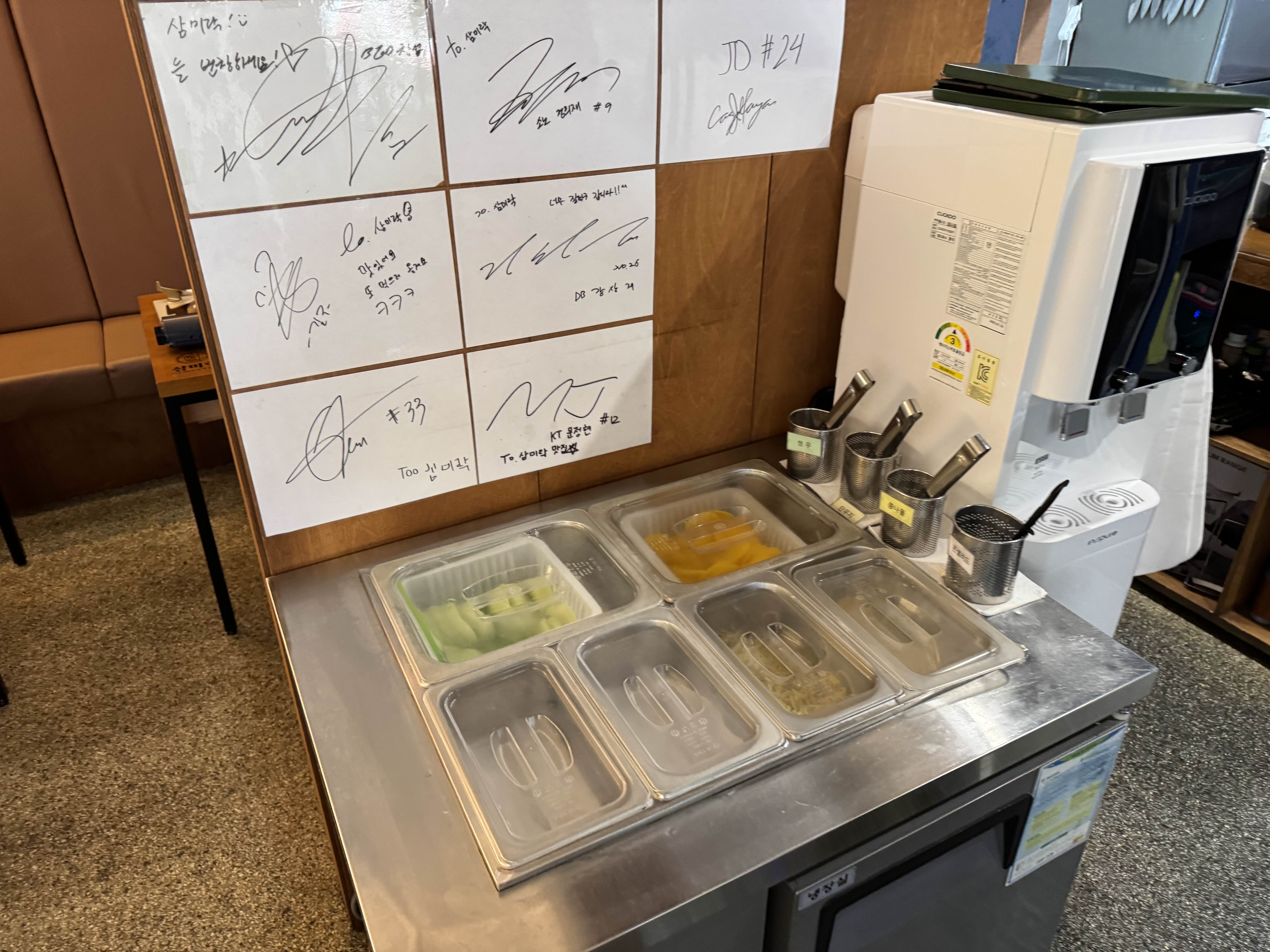 부족한 밑반찬은 셀프로 이용할 수 있습니다.