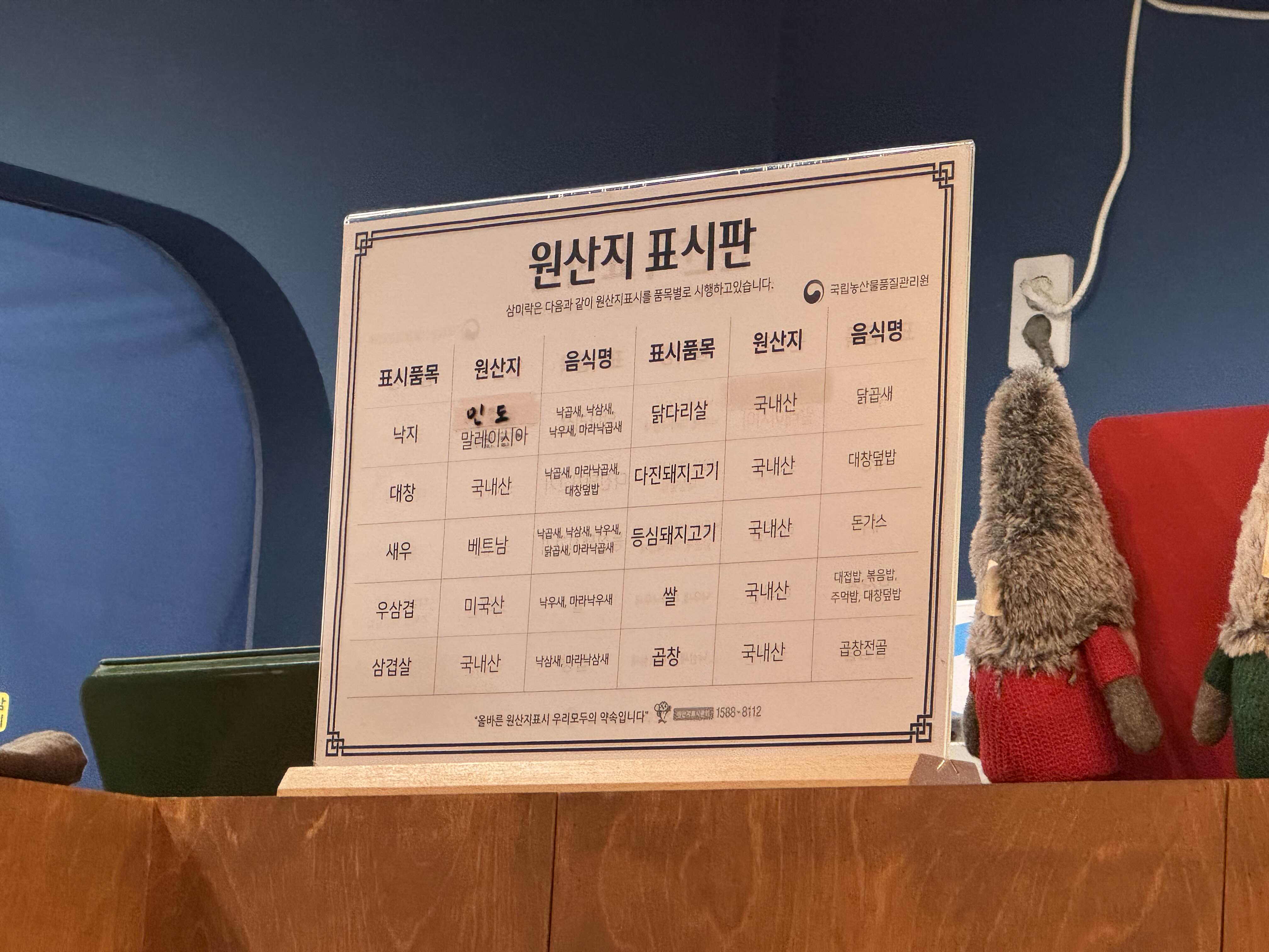 원산지 표시가 가게 한켠에 잘 돼있습니다.