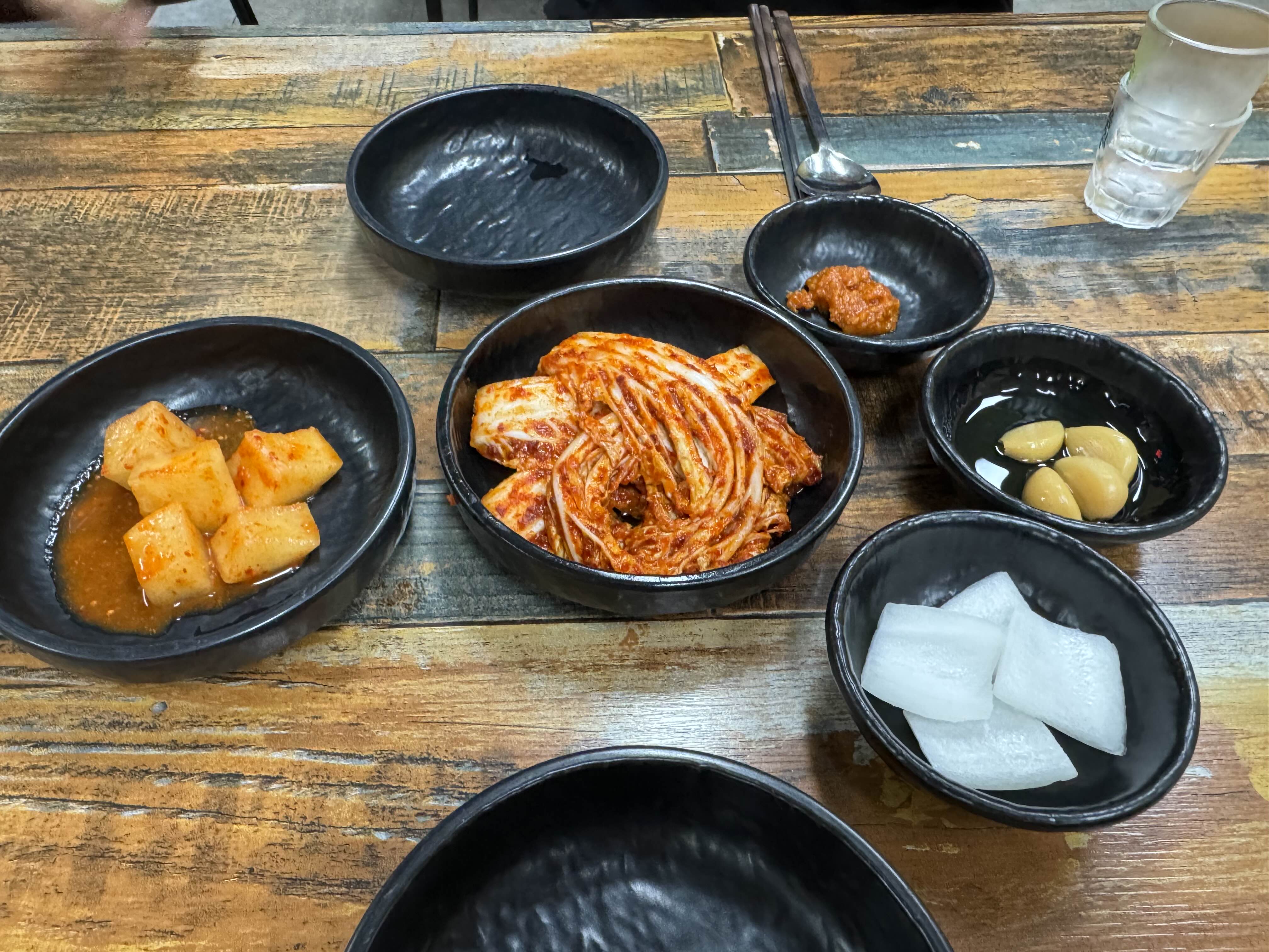 깍두기, 겉절이, 양파, 마늘장아찌, 쌈장이 나옵니다. 겉절이가 맛이 좋았고 깍두기도 맛이 괜찮았습니다.