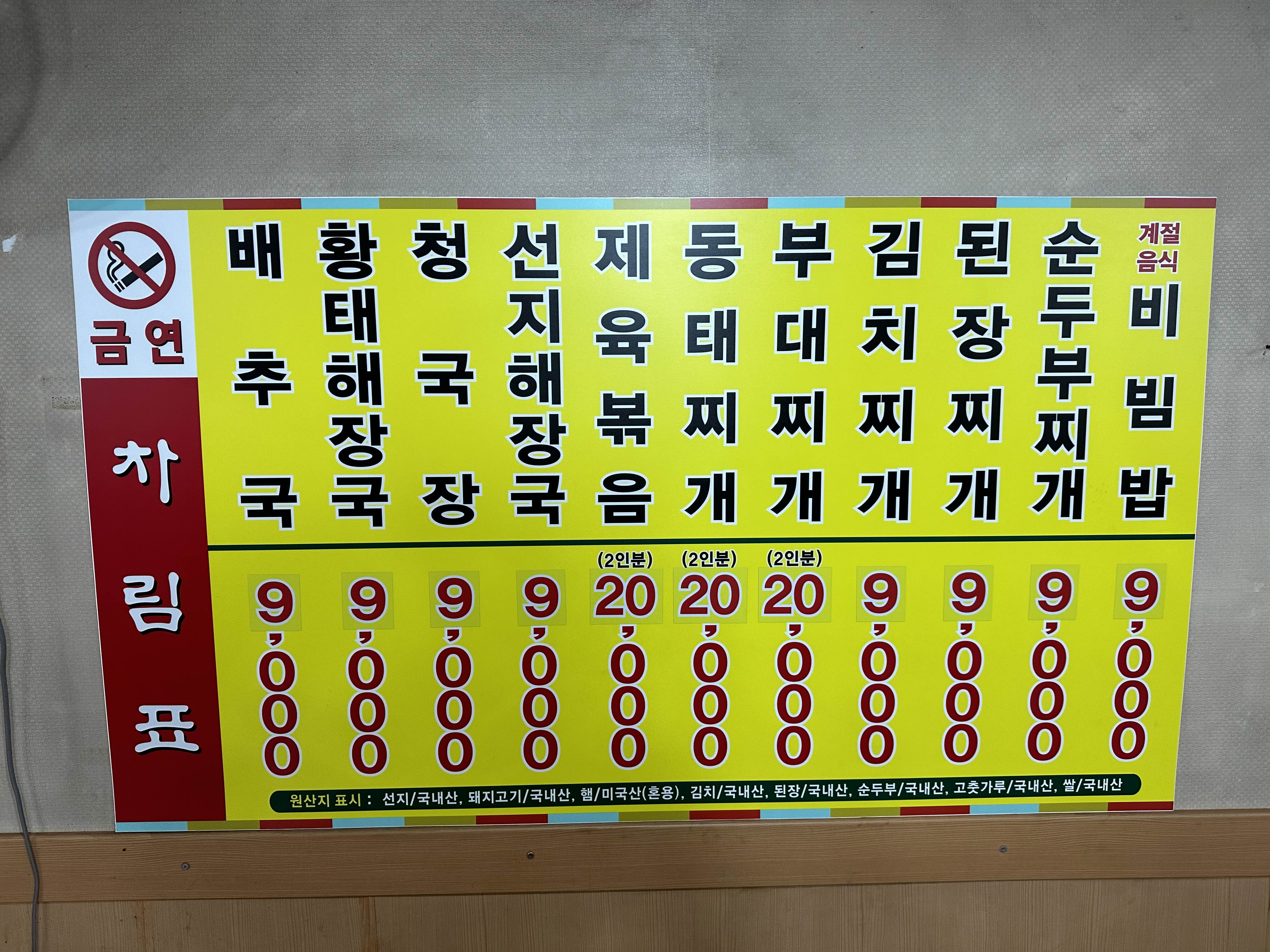 메뉴는 주로 국과 찌개메뉴고 비빔밥과