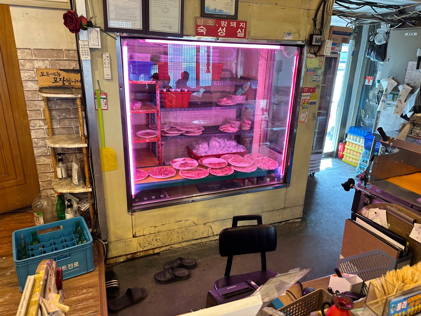 카운터 뒷편에는 고기 숙성고가 있습니다.
