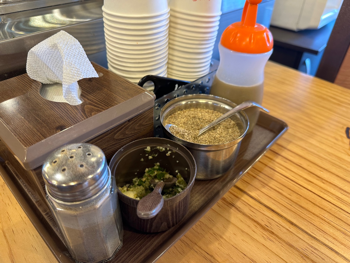 청양고추, 후추, 들깻가루, 겨자 소스가 있습니다.