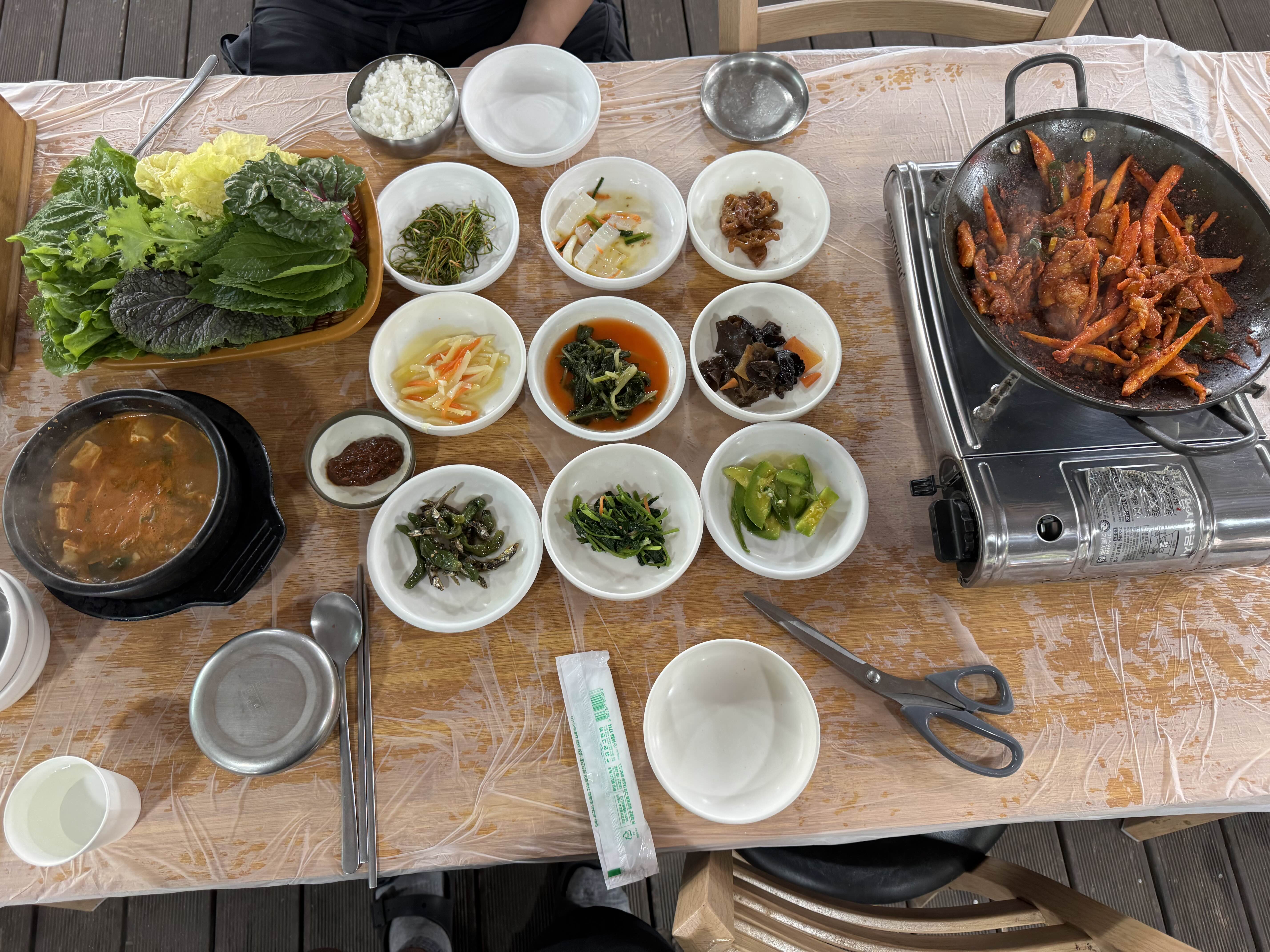 ▪️한마당식당▪️경기 양평군 용문면 용문산로628번길 2▪️화-일 10:00-19:30 라스트오더 18:30▪️매주 월요일 정기 휴무▪️☎️031-773-5678용문산 등산후 용문산 관광단지 내 식당을 찾다가 더덕제육쌈밥이 맛있어보이는 한마당식당에 방문했습니다.내부가 상당히 넓습니다. 야외석 안쪽에도 크게 실내가 있습니다. 총 200석 규모라고 하니 단체 야유회 등을 하기에도 좋아보입니다.정식류로 제육정식, 더덕정식, 불고기 정식, 더덕제육쌈밥 정식, 더덕소불고기쌈밥 정식이 있고 산채지빔밥, 청국장, 된장찌개, 도토리냉묵밥, 열무국수, 물냉면 등 식사류와 삼겹살, 두부버섯전골, 김치찌개, 닭도리탕, 엄나무 백숙 등 다양한 메뉴를 판매중입니다.더덕제육쌈밥 정식으로 2인분 주문했습니다. 가격은 1인분에 1..